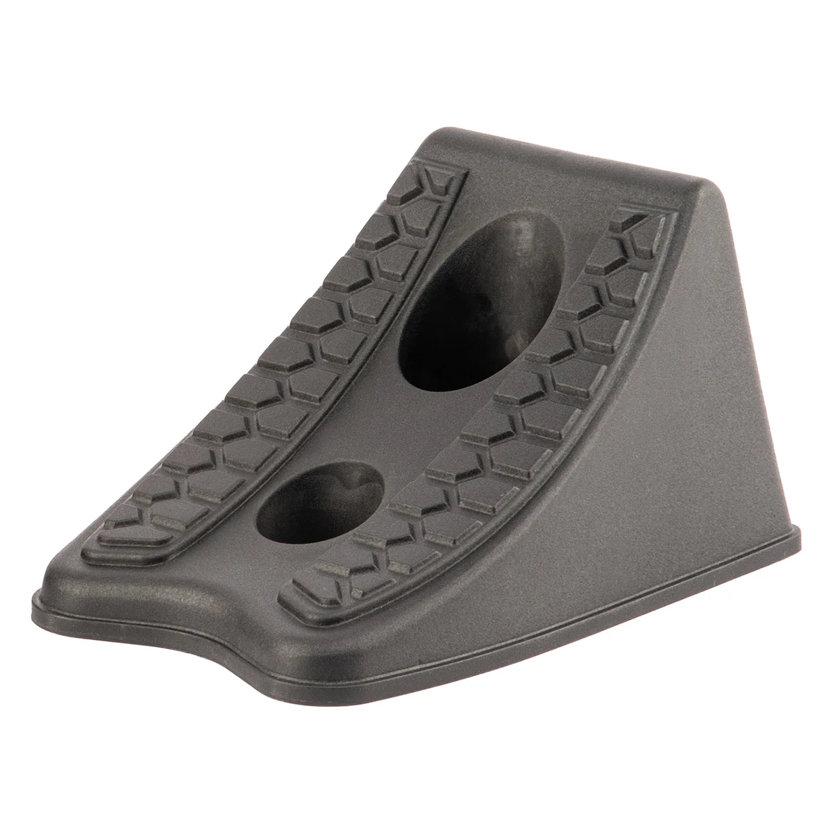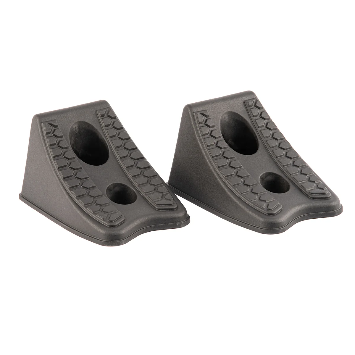 Противооткатные башмаки Matrix 56780 поставляются в комплекте из 2 штук, и предназначены для установки под колеса легкового автомобиля или прицепа. Башмаки, или упоры, не дают транспортному средству скатиться со склона или сместиться во время подъема на домкрате. Они пригодятся автовладельцам, а также будут полезны мастерам по ремонту авто.Преимущества Упоры, изготовленные из пластика, не боятся осадков и легко чистятся. Рифленая поверхность обеспечивает упорам надежное сцепление с колесами. У автомобильных башмаков имеются отверстия в корпусе, благодаря которым их можно закрепить на поверхности и использовать для ограничения въезда на парковочное место.