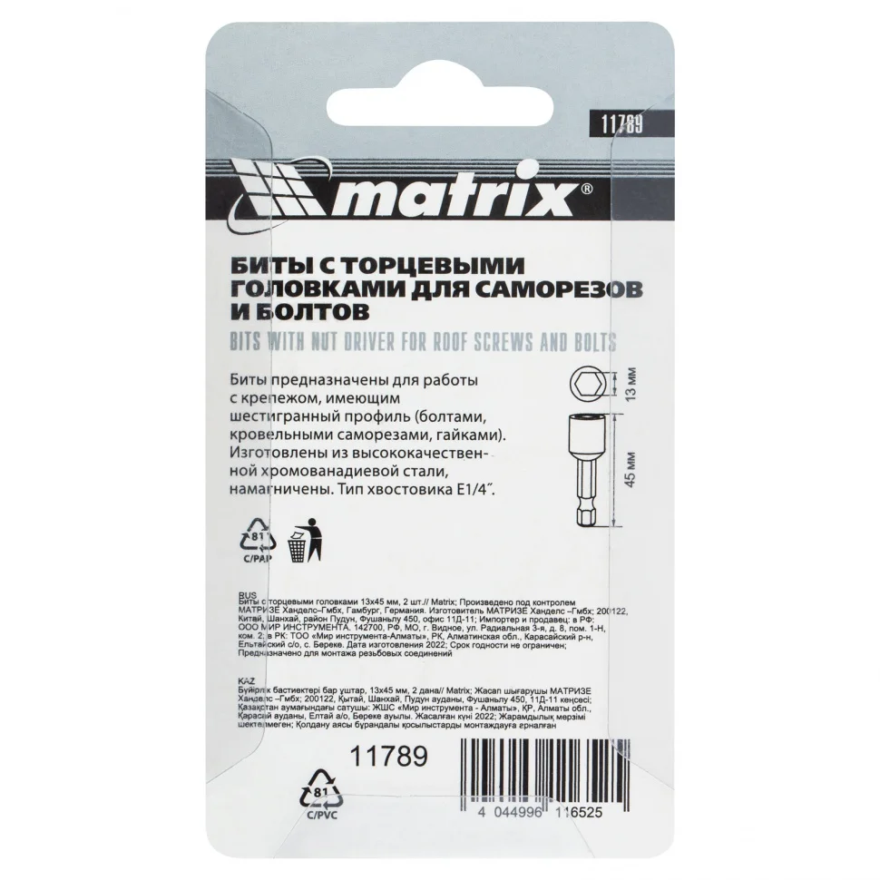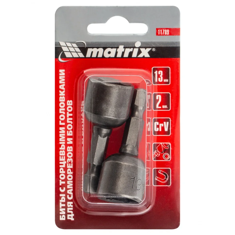 Биты с торцевыми головками 13 мм, 45 мм, 2 шт. Matrix 11789