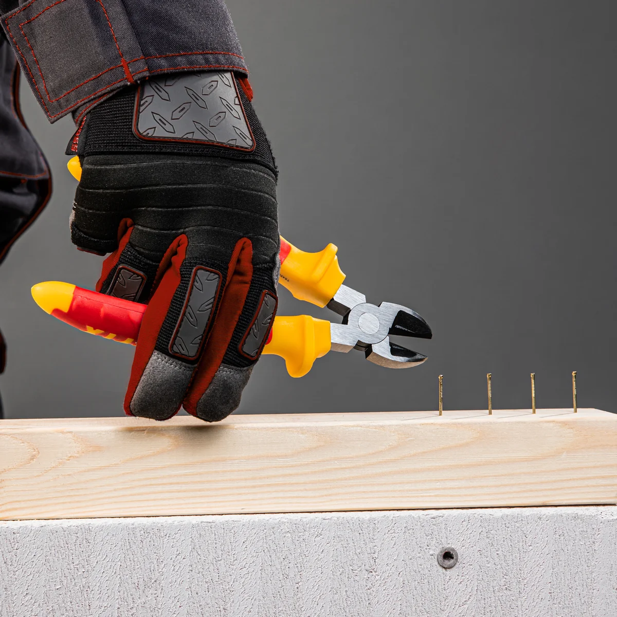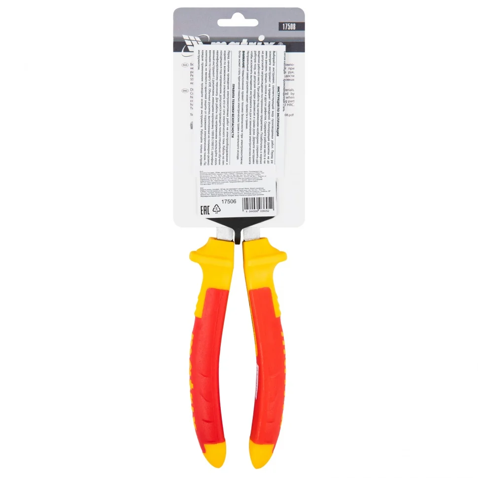 Бокорезы Matrix Insulated 17508, 180 мм, с двухкомпонентными рукоятками, предназначены для откусывания проволоки, кабеля и проводов, а также резки материалов из металла и пластика. Благодаря диэлектрическому покрытию их можно использовать для слесарных и ремонтных работ под напряжением до 1000 В.Преимущества Бокорезы отличаются высоким ресурсом, т.к. губки изготовлены из хромованадиевой стали высокого качества: она выплавлена в электропечи, закалена маслом до твердости 43-50 HRC и прошла термообработку (отпуск). Режущие кромки разрезают даже твердые материалы благодаря твердости 62 HRC, полученной путем закалки высокочастотными токами. Удобство работы — на губках имеются специальные зоны для захвата плоских и круглых деталей. Комфортную и безопасную работу обеспечивают двухкомпонентные рукоятки, которые не скользят в руке. Ограничители на рукоятках исключают риск соскальзывания руки к металлическим частям бокорезов. Диэлектрические свойства рукояток подтверждены испытаниями электрическим током. Немецкий знак качества Geprufte Sicherheit и полное соответствие европейским электротехническим нормам VDE подтверждают надежность и безопасность инструмента.