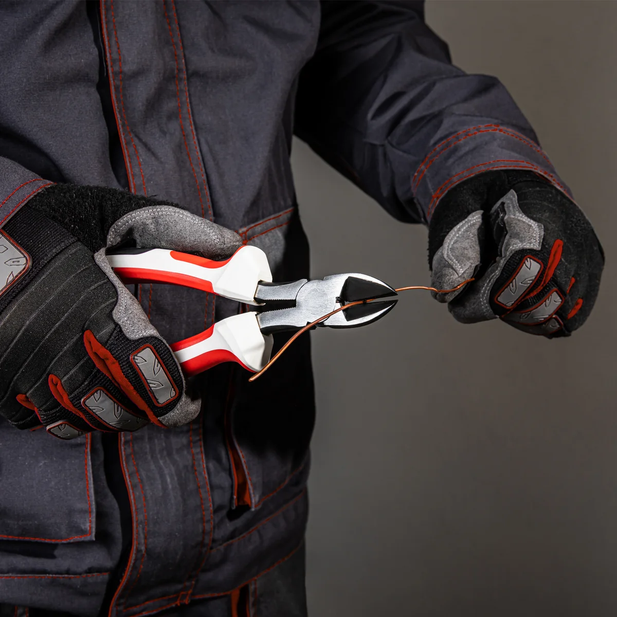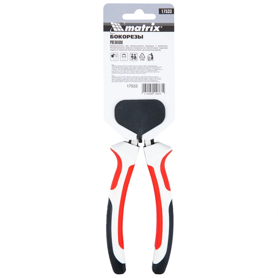 Бокорезы Matrix Premium 17533, 180 мм, с трехкомпонентными рукоятками, применяются при проведении слесарных и монтажных работ для разрезания проволоки, кабелей и проводов. Они будут полезны в гараже, дома, на стройке, в мастерской как частным, так и профессиональным мастерам.ПреимуществаРабочие части прошли индукционную закалку токами высокой частоты, такое решение позволило укрепить их конструкцию и повысить устойчивость к износу.Режущие кромки устойчивы к механическим воздействиям и легко справляются с перерезанием плотных материалов благодаря высокой твердости 49-52 HRC.Трехкомпонентные рукоятки обеспечивают комфортную работу, т.к. не соскальзывают и удобно лежат в руке.Широкие ограничительные упоры не дают руке соскочить к режущим элементам, поэтому работа с бокорезами безопасна.