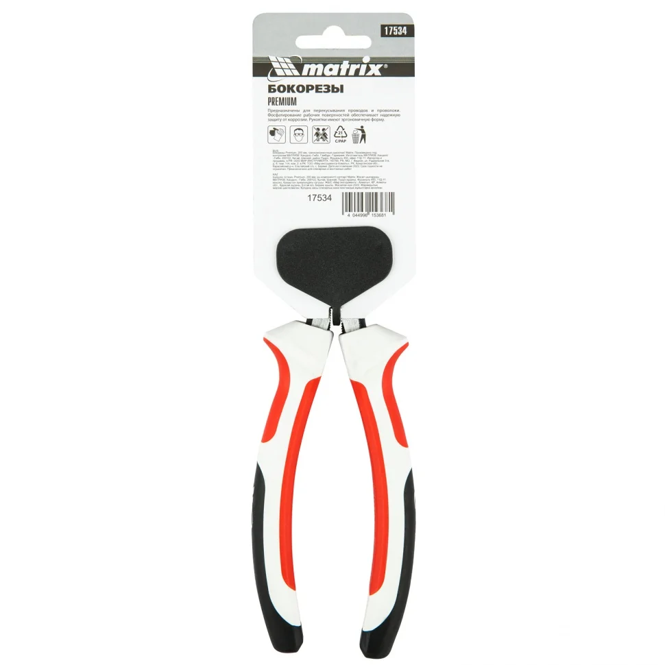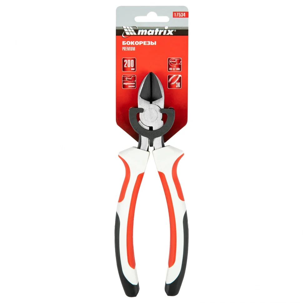 Бокорезы Matrix Premium 17534, 200 мм, с трехкомпонентными рукоятками, применяются при проведении слесарных и монтажных работ для разрезания проволоки, кабелей и проводов. Они будут полезны в гараже, дома, на стройке, в мастерской как частным, так и профессиональным мастерам.ПреимуществаРабочие части прошли индукционную закалку токами высокой частоты, такое решение позволило укрепить их конструкцию и повысить устойчивость к износу.Режущие кромки устойчивы к механическим воздействиям и легко справляются с перерезанием плотных материалов благодаря высокой твердости 49-52 HRC.Трехкомпонентные рукоятки обеспечивают комфортную работу, т.к. не соскальзывают и удобно лежат в руке.Широкие ограничительные упоры не дают руке соскочить к режущим элементам, поэтому работа с бокорезами безопасна.
