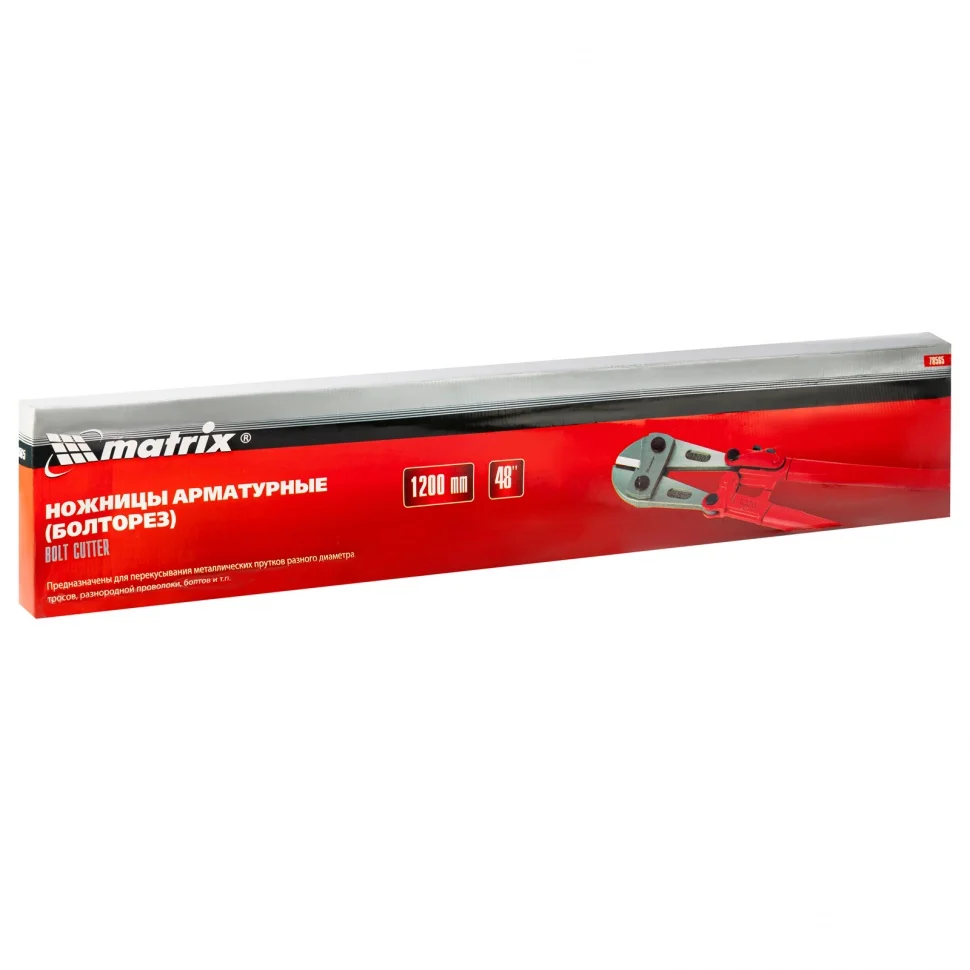 Болторез Matrix 78565, 1200 мм/48", применяется для перекусывания арматурных стержней, болтов, прутков и проволоки из стали толщиной до 14 мм. Он пригодится как частным мастерам, так и профессионалам на выездных работах: спасателям и строителям.Преимущества Режущие кромки закалены до твердости 58-60 HRC, что обеспечивает их прочность и повышает эффективность работы. Двойной рычажный механизм облегчает работу, помогая увеличить прилагаемое усилие. Рабочая головка разбирается, а значит, в случае износа режущей части ее легко заменить. Резиновые накладки на ручках способствуют надежному удержанию болтореза в руках, поэтому руки не соскальзывают.