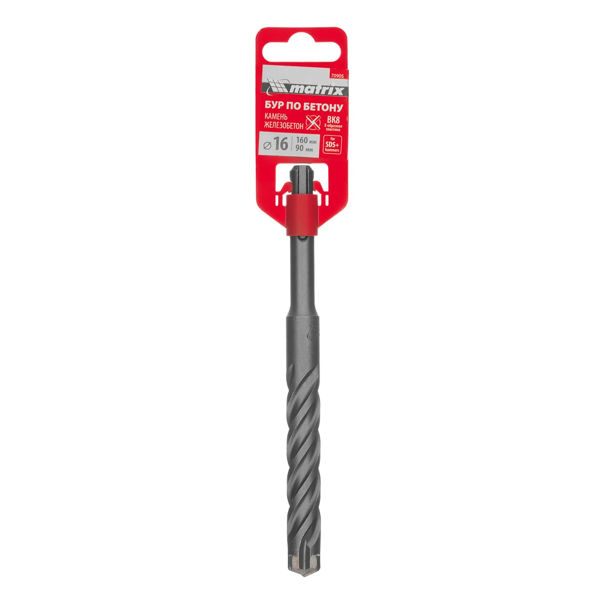 Бур по бетону Matrix 70905 длиной 160 мм, с хвостовиком SDS-plus и крестовой пластиной, предназначен для получения отверстий диаметром 16 мм в бетоне, камне и кирпиче. Крестовая пластина обеспечивает эффективную работу с твердыми материалами, в том числе армированным бетоном. Бур устанавливается в патрон перфоратора и используется во время проведения строительных работ.