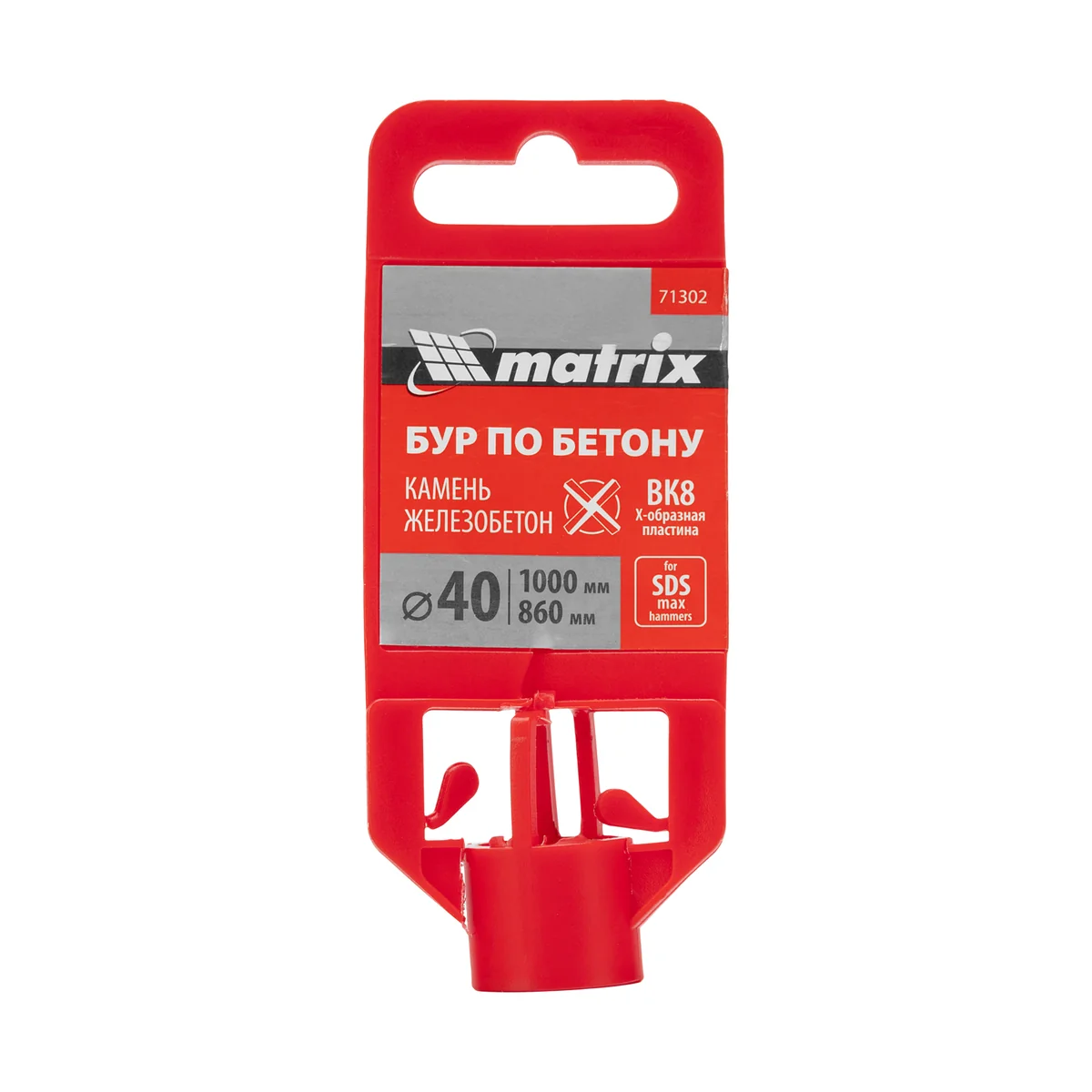 Бур по бетону Matrix 71302 длиной 1000 мм, с хвостовиком SDS MAX и крестовой пластиной, — оснастка для перфораторов высокой мощности, предназначенная для получения отверстий диаметром 40 мм в стенах, полах, перекрытиях. Крестовая пластина в сочетании с усиленной системой крепления SDS MAX позволяет успешно работать с камнем, кирпичом и бетоном, в том числе армированным. Бур используется во время проведения строительных работ, незаменим для прокладки коммуникаций: газо- и водопроводов, электросетей и т.д.