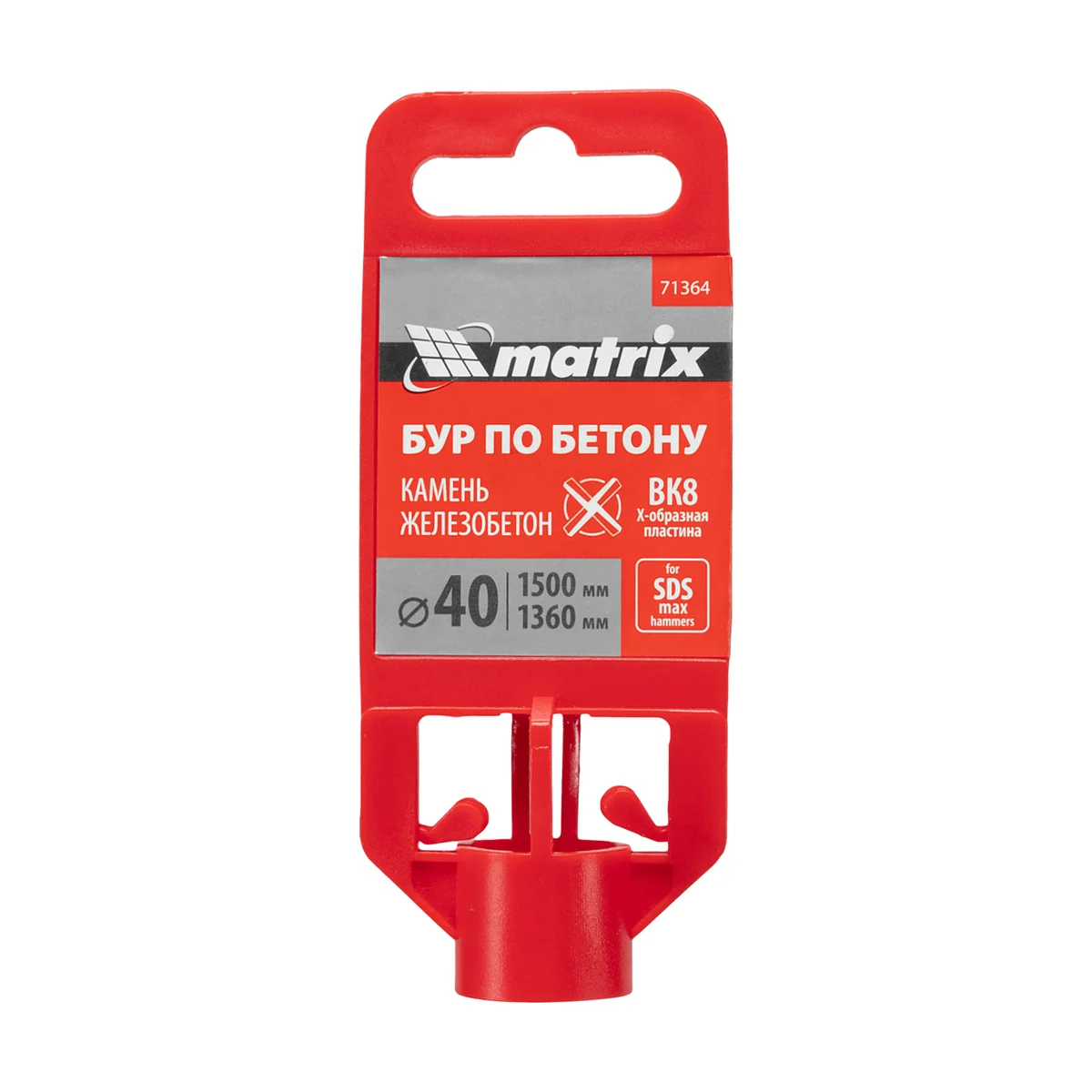 Бур по бетону Matrix 71364 длиной 1500 мм, с хвостовиком SDS MAX и крестовой пластиной, — оснастка для перфораторов высокой мощности, предназначенная для получения отверстий диаметром 40 мм в стенах, полах, перекрытиях. Крестовая пластина в сочетании с усиленной системой крепления SDS MAX позволяет успешно работать с камнем, кирпичом и бетоном, в том числе армированным. Бур используется во время проведения строительных работ, незаменим для прокладки коммуникаций: газо- и водопроводов, электросетей и т.д.
