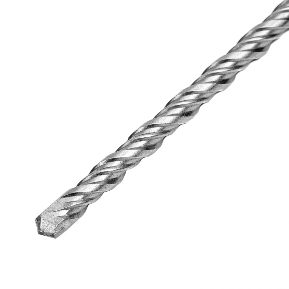 Бур по бетону Matrix 71027, 8 х 210 мм, SDS PLUS предназначен для установки на перфоратор и позволяет получать отверстия диаметром 8 мм в бетоне, камне и кирпиче. Он эффективно решает поставленные задачи благодаря режущей пластине из высокотвердого сплава карбида вольфрама ВК8 твердостью 80-90 HRC.ПреимуществаХвостовик SDS Plus позволяет быстро устанавливать бур и надежно его фиксирует.Рабочая часть изготовлена из легированной стали 40Х с добавлением хрома, поэтому инструмент устойчив к высоким нагрузкам, возникающим при ударном сверлении.На режущей пластине имеется центрирующая головка — во время работы бур не уводит в сторону, что повышает качество сверления и продлевает ресурс работы инструмента.Увеличенная площадь сечения корпуса способствует снижению вибраций при сверлении и предотвращает поломку бура.Двойная усиленная спираль удаляет большое количество шлама, в результате снижается нагрузка на бур и возрастает его производительность.