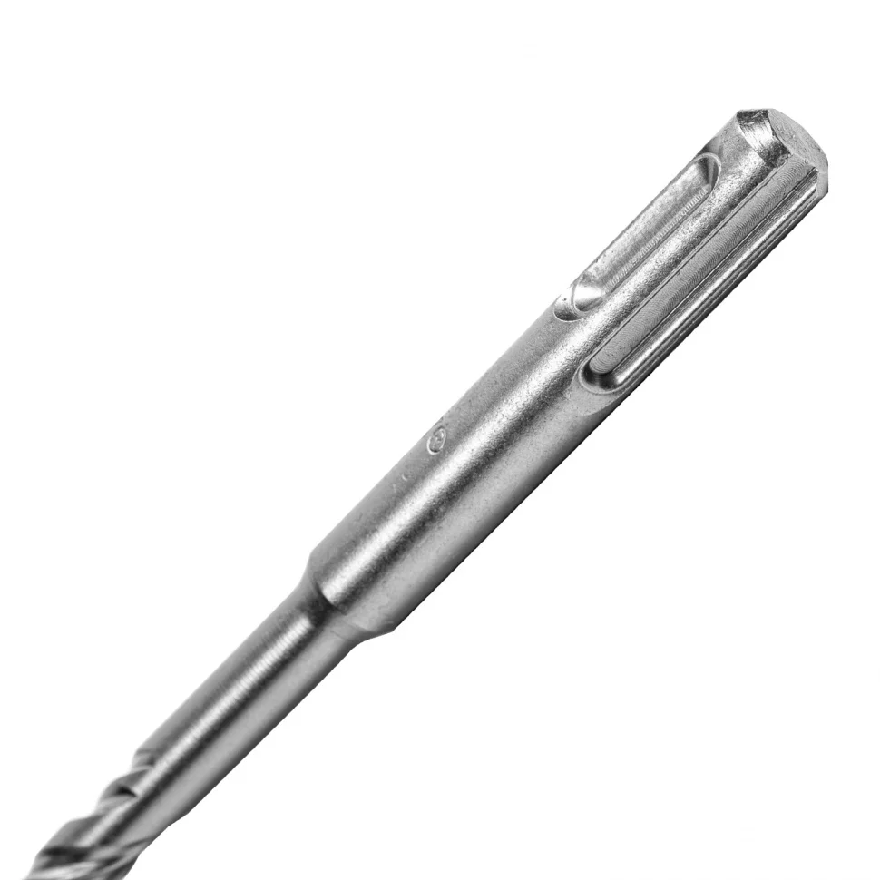 Бур по бетону Matrix 710061, 8 х 460 мм, SDS PLUS предназначен для установки на перфоратор и позволяет получать отверстия диаметром 8 мм в бетоне, камне и кирпиче. Он эффективно решает поставленные задачи благодаря режущей пластине из высокотвердого сплава карбида вольфрама ВК8 твердостью 80-90 HRC.ПреимуществаХвостовик SDS Plus позволяет быстро устанавливать бур и надежно его фиксирует.Рабочая часть изготовлена из легированной стали 40Х с добавлением хрома, поэтому инструмент устойчив к высоким нагрузкам, возникающим при ударном сверлении.На режущей пластине имеется центрирующая головка — во время работы бур не уводит в сторону, что повышает качество сверления и продлевает ресурс работы инструмента.Увеличенная площадь сечения корпуса способствует снижению вибраций при сверлении и предотвращает поломку бура.Двойная усиленная спираль удаляет большое количество шлама, в результате снижается нагрузка на бур и возрастает его производительность.