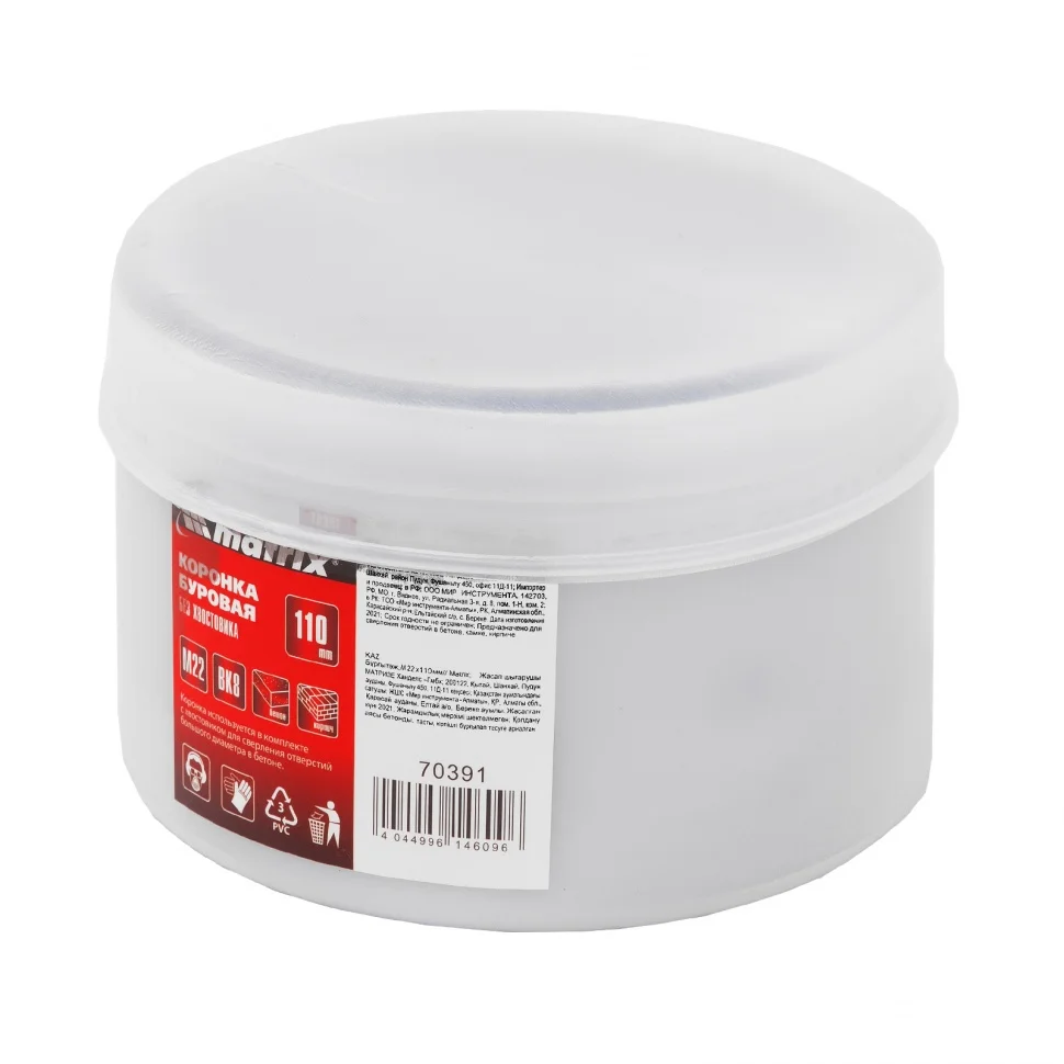 Буровая коронка Matrix 70391, M22 х 110 мм, рассчитана на сверление отверстий в бетоне, кирпиче, граните, природном и искусственном камне. Она устанавливается в качестве оснастки на ударные дрели или перфораторы, оснащенные хвостовиками SDS-Plus или SDS-Max. Коронка позволяет получить большие отверстия, поэтому пригодится при проведении бытовых ремонтных работ для монтажа розеток, выключателей и прокладки труб.ПреимуществаКачественное исполнение гарантирует прочность и высокий ресурс коронки - корпус выполнен из углеродистой стали, а зубья сделаны из твердого сплава ВК8.За счет спиральной канавки обеспечивается эффективный отвод продуктов сверления, поэтому нагрузка на перфоратор снижена.К коронке можно подобрать центрирующее сверло с необходимым типом хвостовика Matrix 70338-70363 (в комплект не входят).
