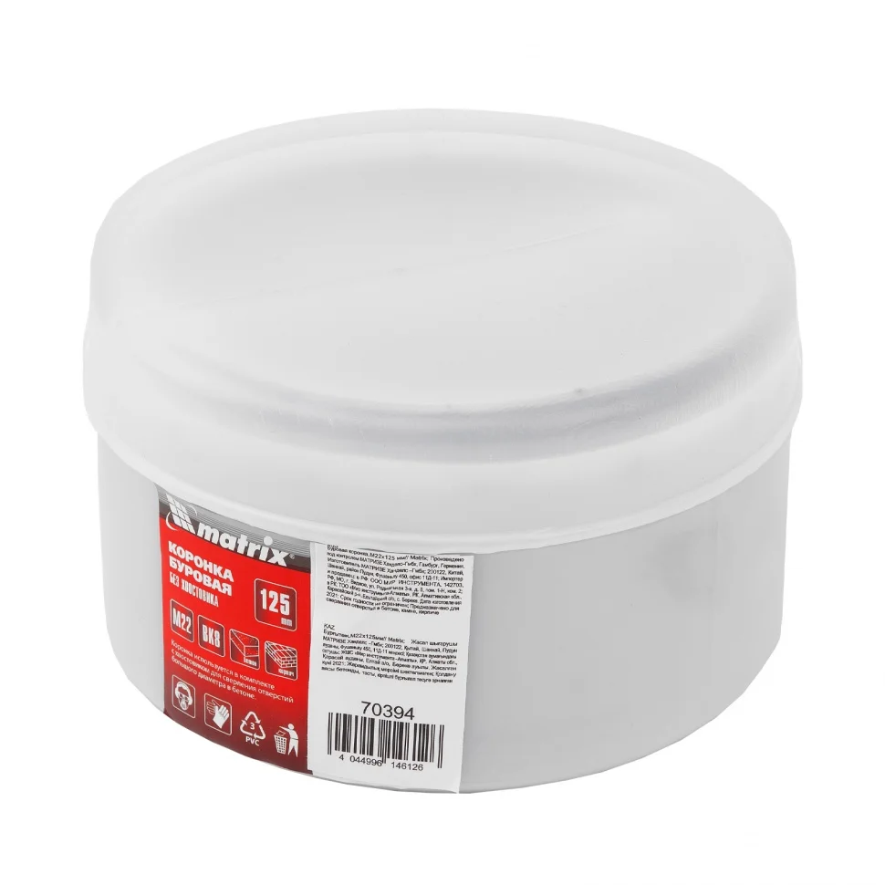 Буровая коронка M22 х 125 мм Matrix 70394 рассчитана на сверление отверстий в бетоне, кирпиче, граните, природном и искусственном камне. Устанавливается на ударные дрели или перфораторы с патронами под хвостовик SDS-Plus или SDS-Max. Коронка позволяет получить большие отверстия, поэтому пригодится для монтажа розеток, выключателей и прокладки труб.ПреимуществаПрочность и высокий ресурс — корпус выполнен из углеродистой стали, а зубья — из твердого сплава ВК8.Эффективность — спиральная канавка на корпусе обеспечивает улучшенный отвод продуктов сверления, что снижает нагрузку на перфоратор и повышает скорость работы.Функциональность — к коронке можно подобрать центрирующее сверло с необходимым типом хвостовика Matrix 70338-70363 (приобретается отдельно).