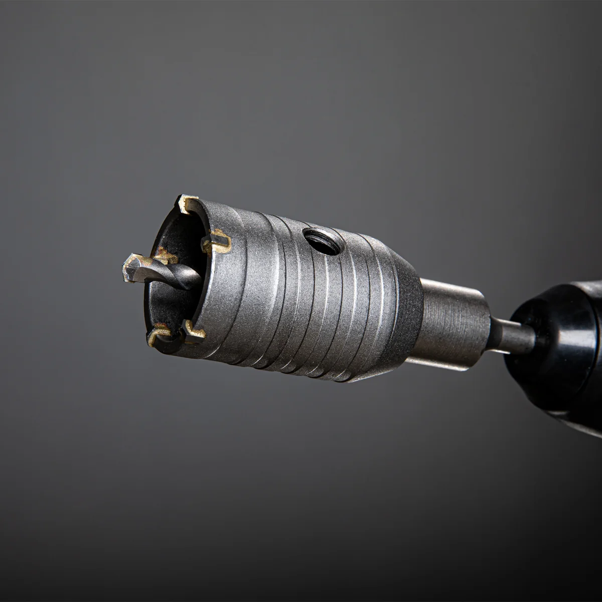 Буровая коронка Matrix 70371, M22 х 50 мм, рассчитана на сверление отверстий в бетоне, кирпиче, граните, природном и искусственном камне. Она устанавливается в качестве оснастки на ударные дрели или перфораторы, оснащенные хвостовиками SDS-Plus или SDS-Max. Коронка позволяет получить большие отверстия, поэтому пригодится при проведении бытовых ремонтных работ для монтажа розеток, выключателей и прокладки труб.ПреимуществаКачественное исполнение гарантирует прочность и высокий ресурс коронки - корпус выполнен из углеродистой стали, а зубья сделаны из твердого сплава ВК8.За счет спиральной канавки обеспечивается эффективный отвод продуктов сверления, поэтому нагрузка на перфоратор снижена.К коронке можно подобрать центрирующее сверло с необходимым типом хвостовика Matrix 70338-70363 (в комплект не входят).