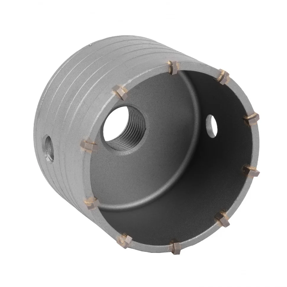 Буровая коронка Matrix 70384, M22 х 85 мм, рассчитана на сверление отверстий в бетоне, кирпиче, граните, природном и искусственном камне. Она устанавливается в качестве оснастки на ударные дрели или перфораторы, оснащенные хвостовиками SDS-Plus или SDS-Max. Коронка позволяет получить большие отверстия, поэтому пригодится при проведении бытовых ремонтных работ для монтажа розеток, выключателей и прокладки труб.ПреимуществаКачественное исполнение гарантирует прочность и высокий ресурс коронки - корпус выполнен из углеродистой стали, а зубья сделаны из твердого сплава ВК8.За счет спиральной канавки обеспечивается эффективный отвод продуктов сверления, поэтому нагрузка на перфоратор снижена.К коронке можно подобрать центрирующее сверло с необходимым типом хвостовика Matrix 70338-70363 (в комплект не входят).