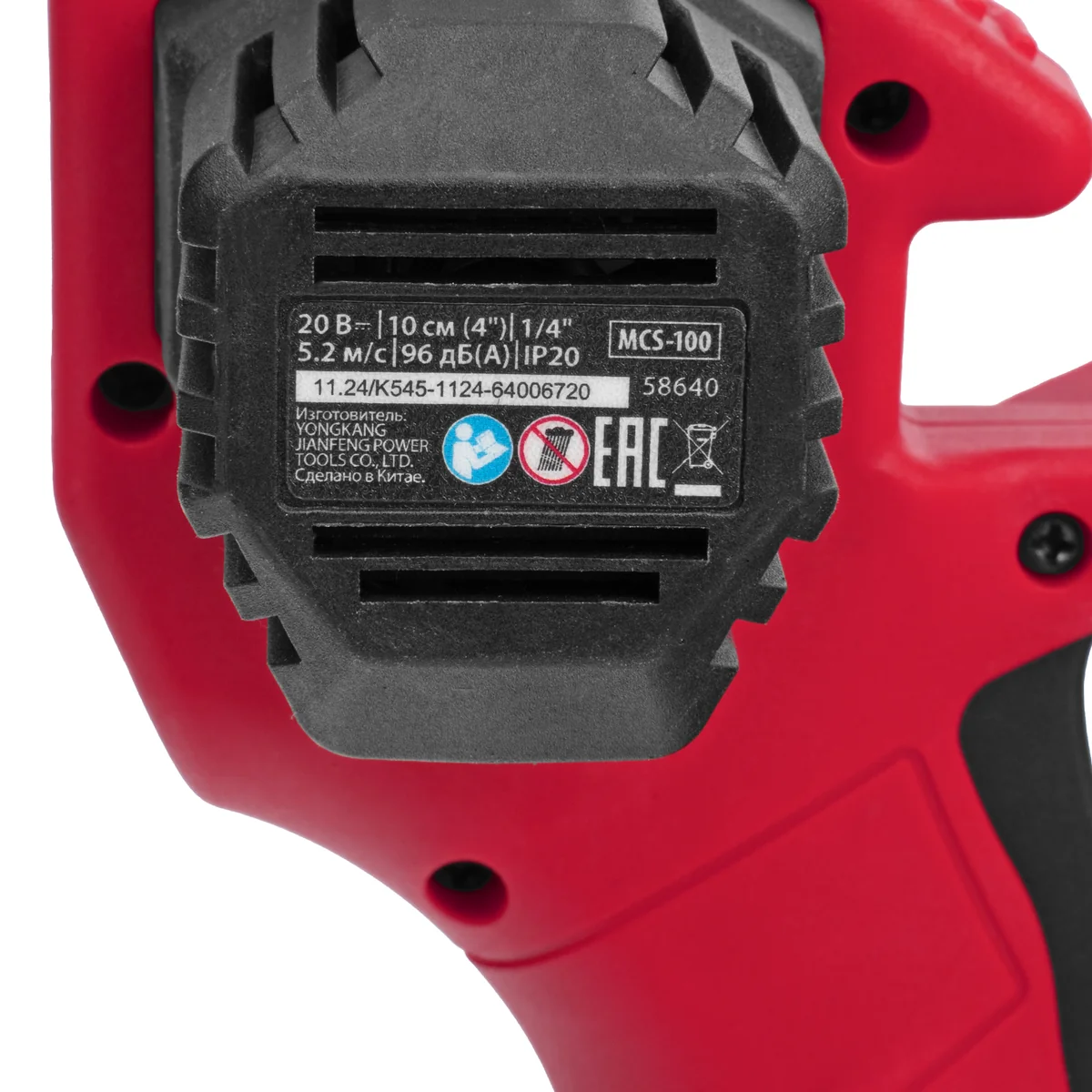 Цепная мини-пила аккумуляторная, MCS-100, шина 100 мм, Li-Ion, 20 В MTX 58640