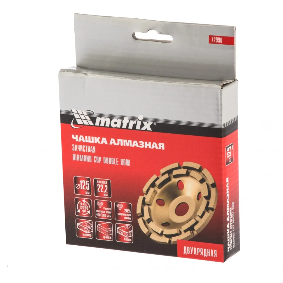 Чашка алмазная зачистная, 125 мм, двухрядная Matrix 72990