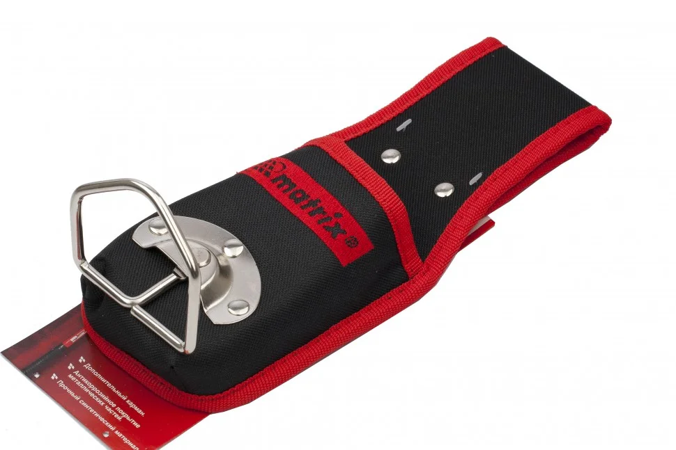 Шарнирный поясной держатель молотка Matrix 90244 будет полезен частным мастерам и профессионалам. Его можно закрепить на поясе и носить с собой, а руки при этом остаются свободными, что особенно актуально при выполнении работ на высоте.ПреимуществаВысокий ресурс держателя обеспечивает синтетический материал «оксфорд» с повышенной стойкостью к износу.Антикоррозийное покрытие защищает металлический держатель от образования ржавчины.Дополнительный карман позволяет хранить не только молоток, но и другие инструменты или оснастку.