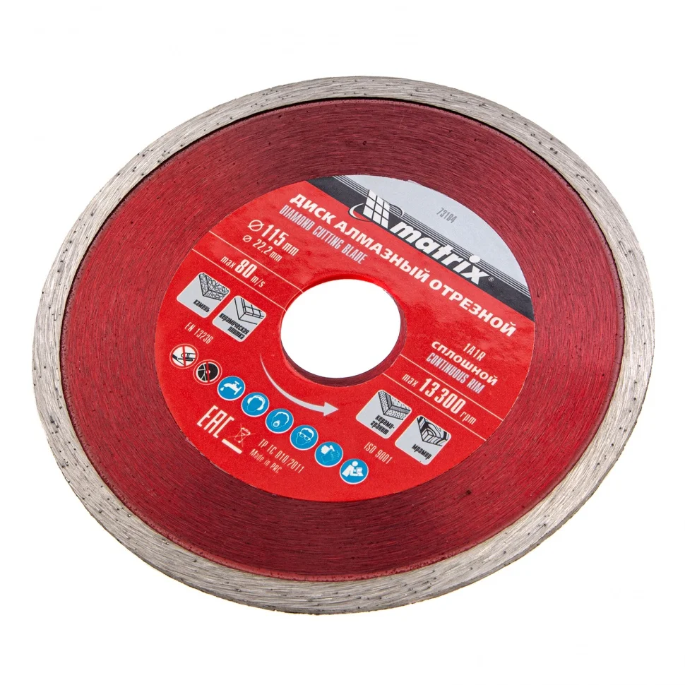 Диск алмазный отрезной сплошной Matrix 73184, 115 х 22,2 мм, предназначен для мокрого реза мрамора, керамической плитки, керамогранита, натурального или искусственного камня. Устанавливается на углошлифовальные машины и плиткорезы с посадочным диаметром 22,2 мм. Благодаря использованию водяного охлаждения улучшается качество реза, а также продлевается срок службы диска.ПреимуществаБлагодаря сплошной кромке и использованию водяного охлаждения срез получается ровным, без сколов и трещин.За счет качественного исполнения методом холодного прессования диск долго сохраняет режущие свойства.Связка из металлических компонентов надежно удерживает алмазы, что обеспечивает высокий рабочий ресурс.Рабочий слой шириной 6 мм с высокой концентрацией алмазов гарантирует хорошую производительность диска.