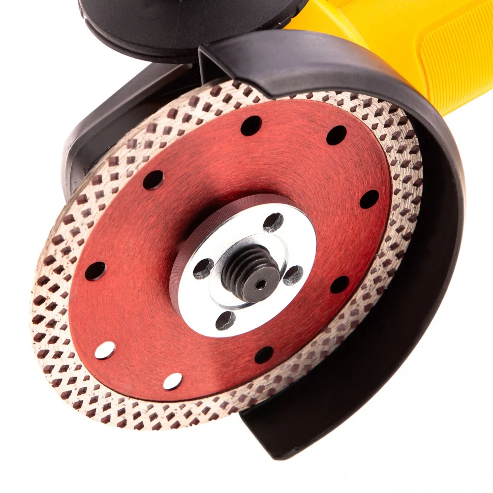 Отрезной алмазный диск Matrix 73122, сплошной, 115 мм - оснастка для болгарок и плиткорезов с диаметром вала 22,2 мм. Он применяется для резки мрамора, искусственного и натурального камня, керамогранитной и керамической плитки. Использование без подачи воды расширяет возможности инструмента. Диск предназначен для бытового применения. Рекомендуется использовать водяное охлаждение для увеличения ресурса диска.ПреимуществаБлагодаря высокой концентрации алмазов срез получается чистым и ровным.Режущая кромка шириной 10 мм способствует повышению производительности.Отверстия в корпусе диска способствуют активному охлаждению, что позволяет использовать диск для сухой резки.Диск выполнен нанесен методом холодного прессования, поэтому устойчив к механическим нагрузкам.