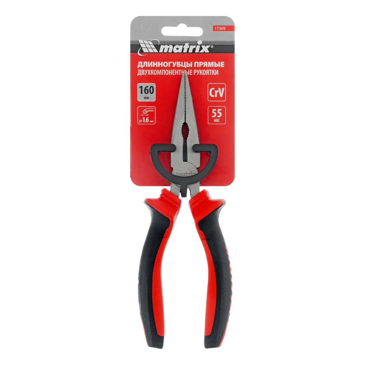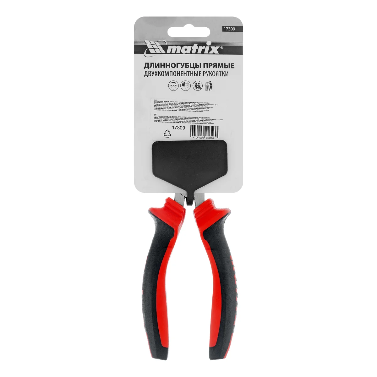 Длинногубцы прямые, 160 мм, хром-ванадий, двухкомпонентные рукоятки Matrix 17309