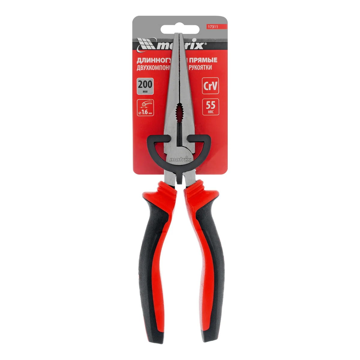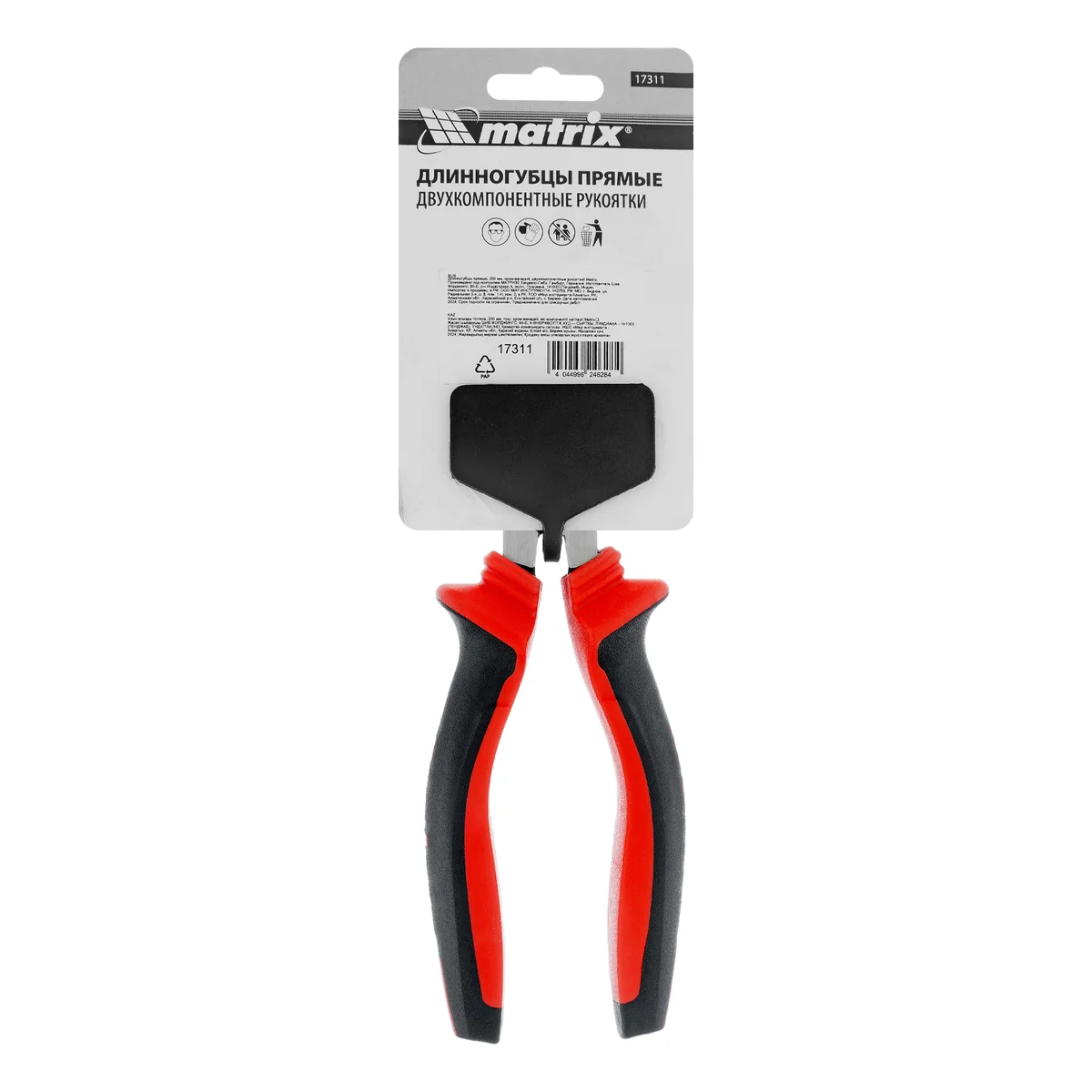 Длинногубцы прямые, 200 мм, хром-ванадий, двухкомпонентные рукоятки Matrix 17311