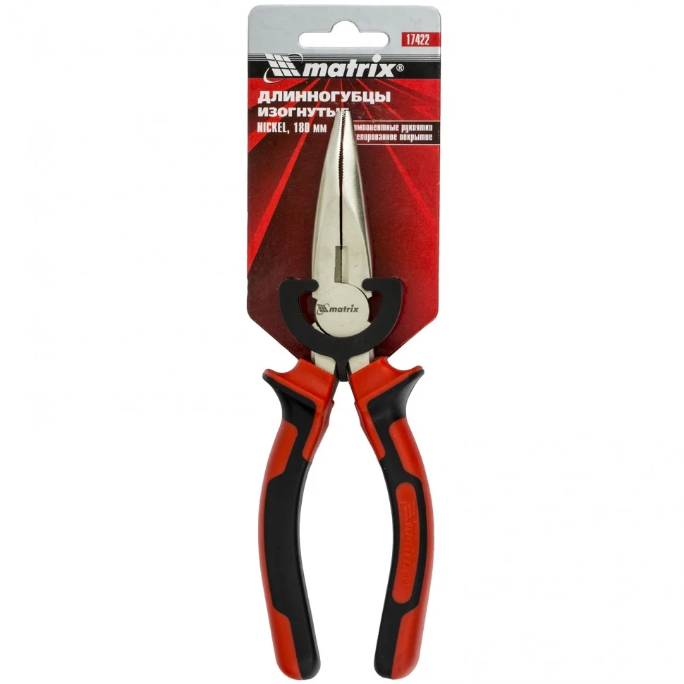 Длинногубцы изогнутые Nickel, 180 мм, никелированные, двухкомпонентные рукоятки Matrix 17422