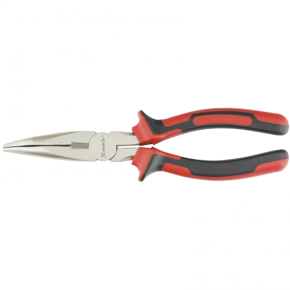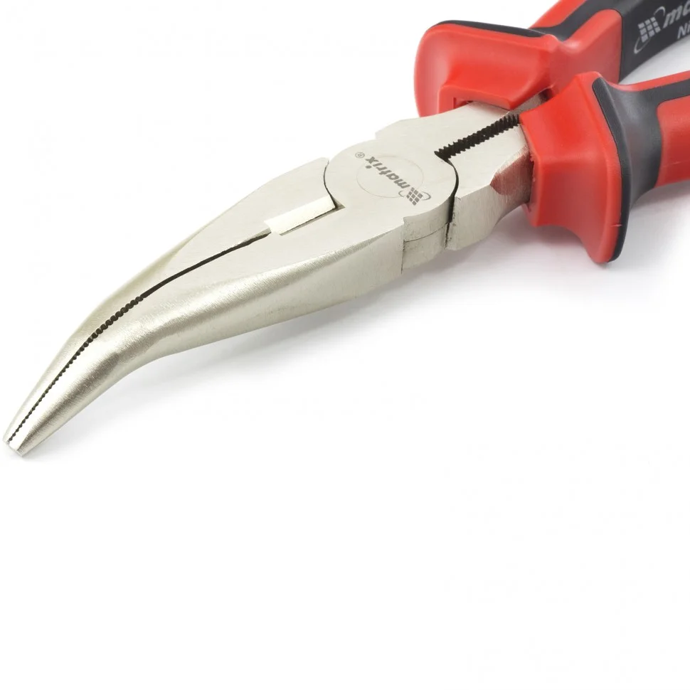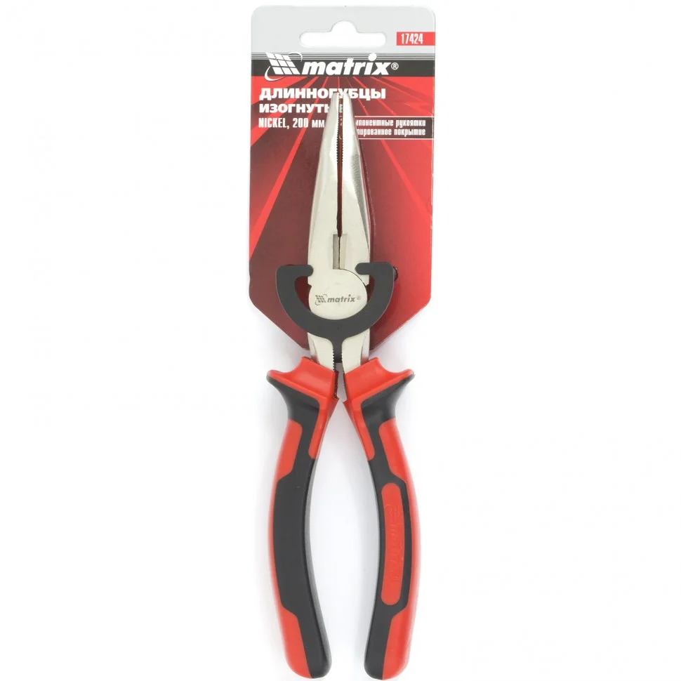 Длинногубцы изогнутые Nickel, 200 мм, никелированные, двухкомпонентные рукоятки Matrix 17424
