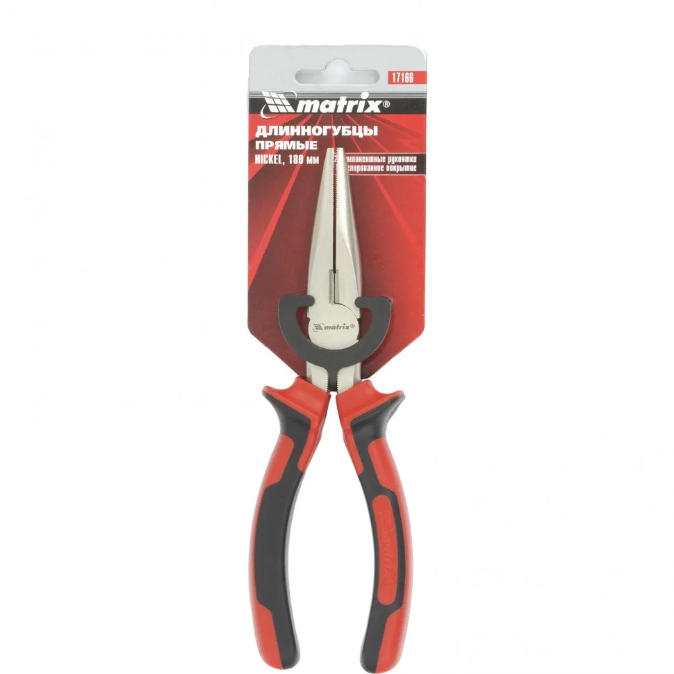Длинногубцы прямые Nickel, 180 мм, никелированные, двухкомпонентные рукоятки Matrix 17166