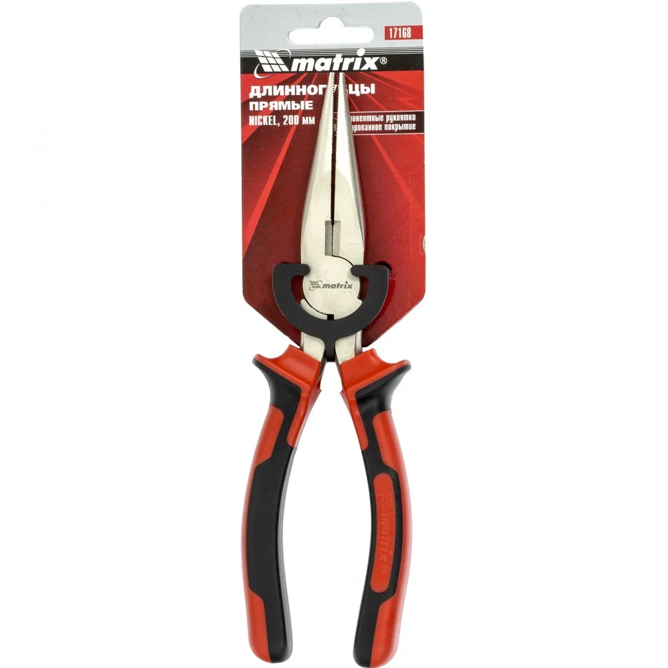 Длинногубцы прямые Nickel, 200 мм, никелированные, двухкомпонентные рукоятки Matrix 17168