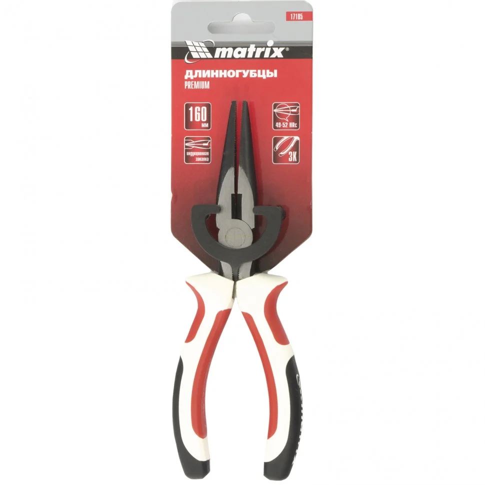 Длинногубцы прямые Premium, 160 мм, трехкомпонентные рукоятки Matrix 17185