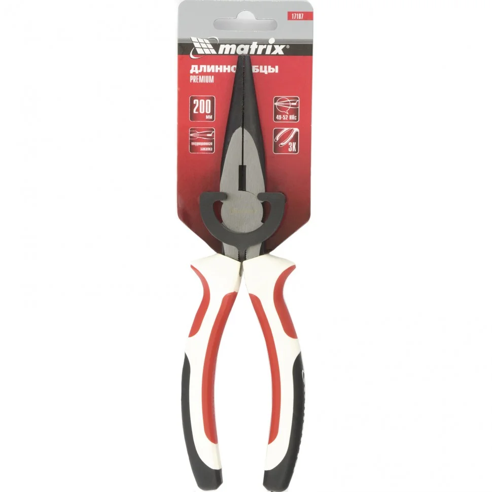 Длинногубцы прямые Premium, 200 мм, трехкомпонентные рукоятки Matrix 17187