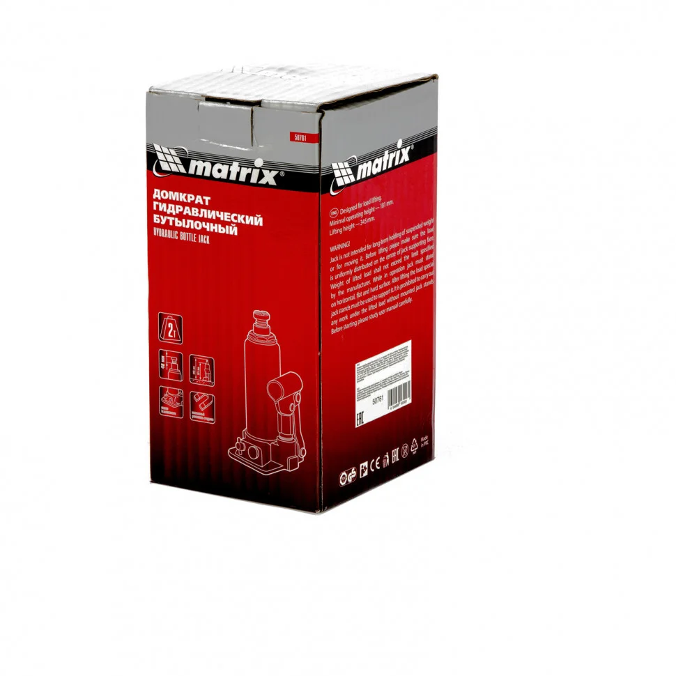 Домкрат гидравлический бутылочный, 2 т, h подъема 181-345 мм Matrix 50761