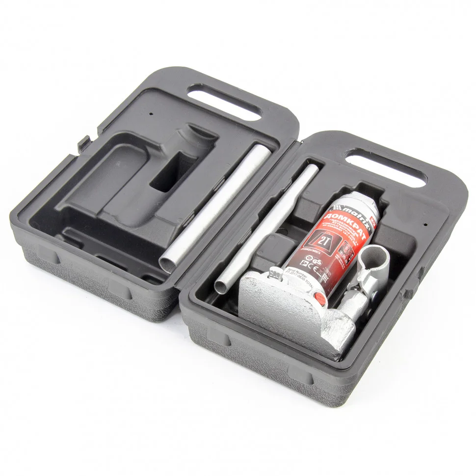 Домкрат гидравлический бутылочный, 2 т, высота подъема 181-345 мм, в пластиковый кейсе Matrix 50750