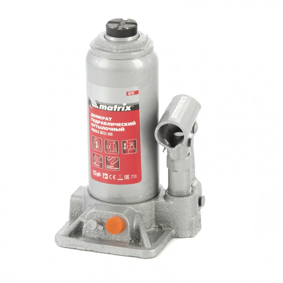 Домкрат гидравлический бутылочный Matrix 50762 предназначен для быстрого поднятия грузов весом до 3 т на высоту 178-343 мм. Он будет полезен автолюбителям и мастерам СТО в качестве полупрофессионального инструмента. Встроенный магнитный уловитель не допускает распространения металлической стружки по домкрату, таким образом обеспечивается защита резиновых уплотнителей от повреждений.ПреимуществаЗащита от перегрузки - домкрат оснащен клапаном безопасности, который не допускает поднятия массы свыше допустимой нормы.Высокий ресурс - домкрат выполнен из прочной коррозионностойкой стали.Разборный корпус - можно отремонтировать домкрат, если возникнет такая необходимость.Вес 3 кг - домкрат легко помещается в багажник авто.