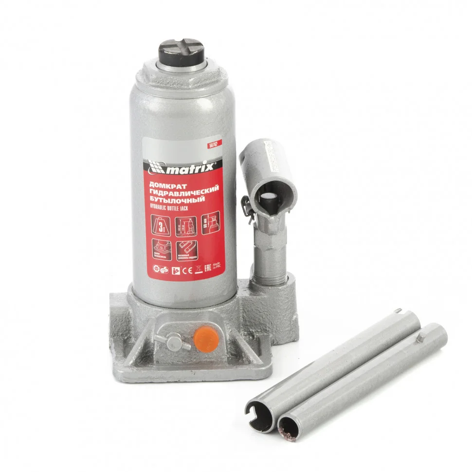 Домкрат гидравлический бутылочный, 3 т, h подъема 178-343 мм Matrix 50762