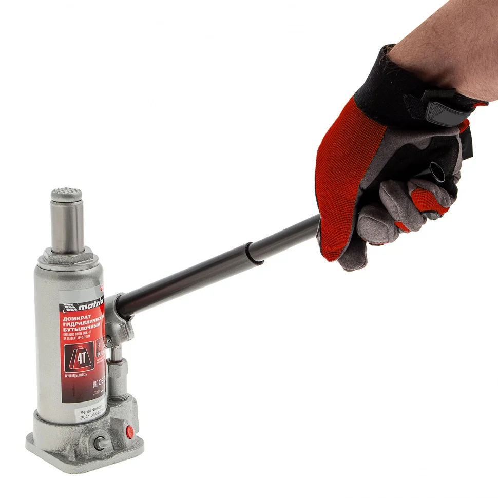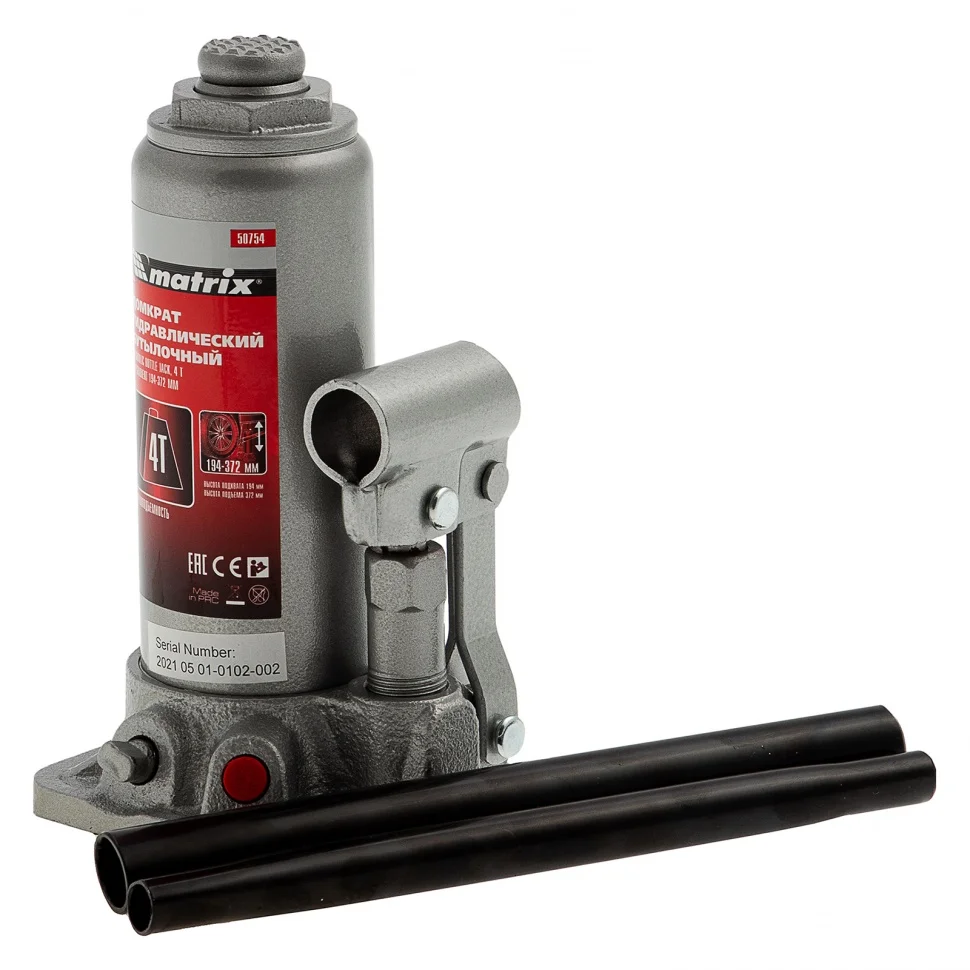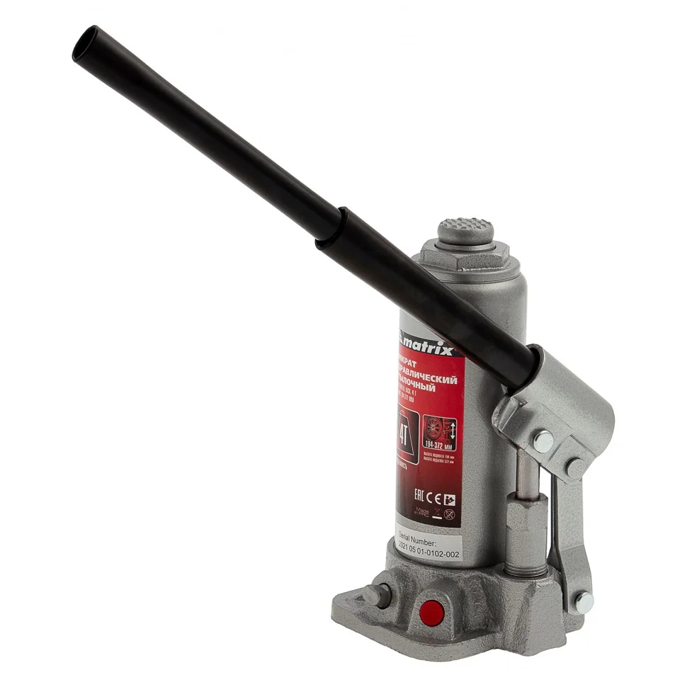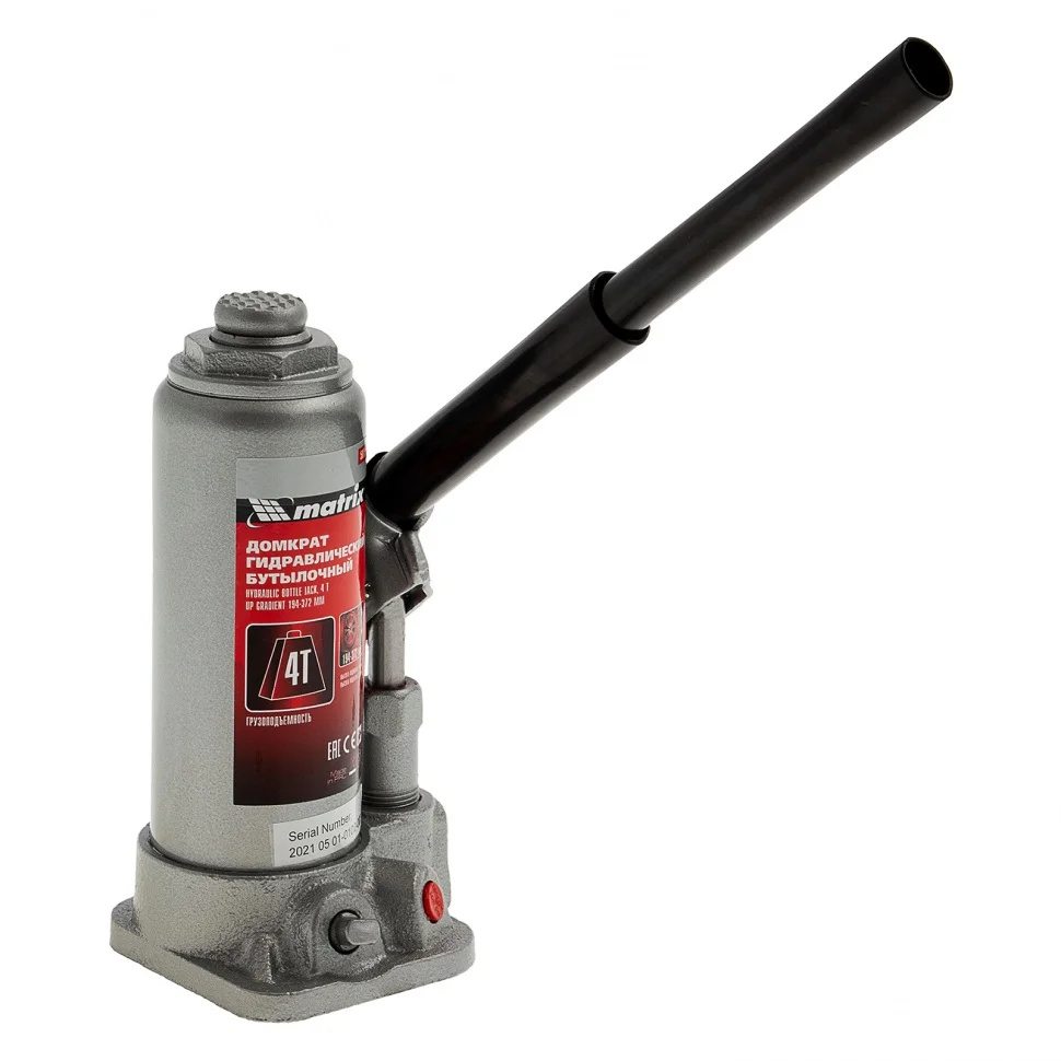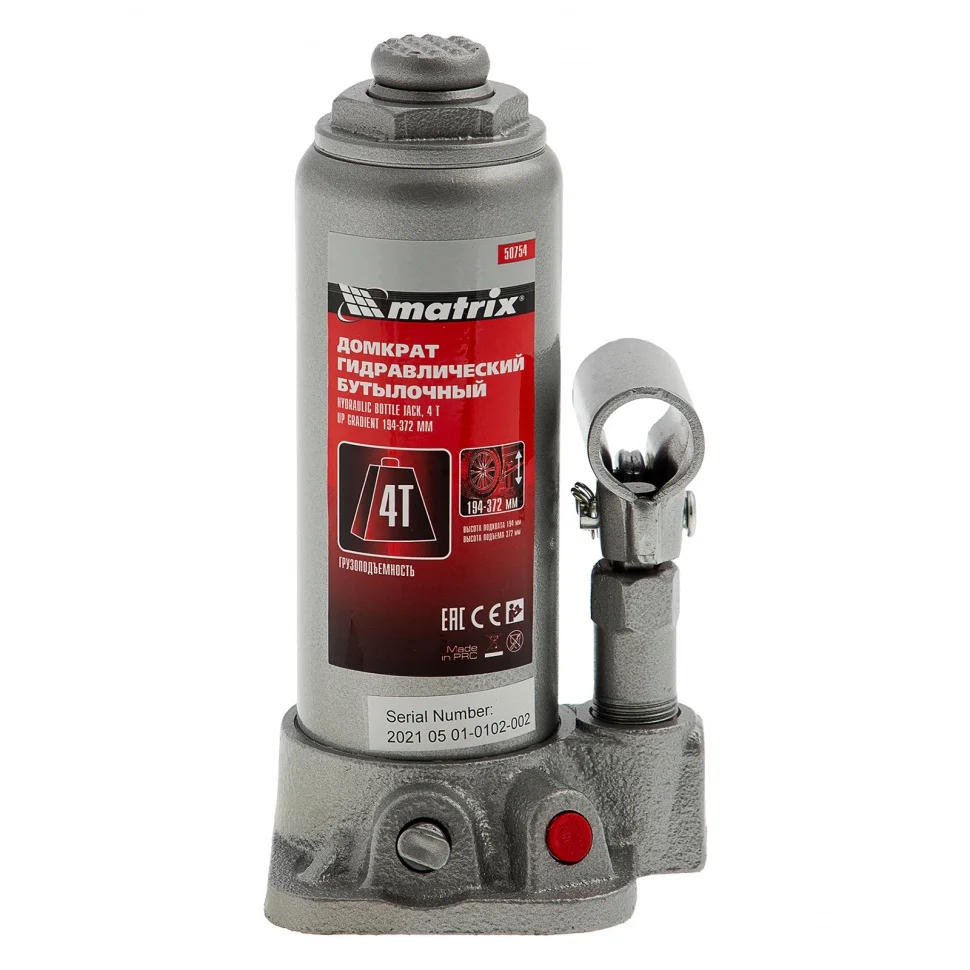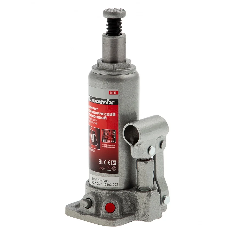 Гидравлический бутылочный домкрат Matrix 50754 поднимает грузы массой до 4 т на высоту от 194 до 372 мм. Оптимален для машин с большим клиренсом. Будет полезен автолюбителям при проведении технического обслуживания и ремонте авто в дороге или в гараже. Также домкрат подходит для полупрофессионального применения на станциях ТО.ПреимуществаЗащита от перегрузки — при превышении допустимой массы груза 4000 кг срабатывает клапан безопасности.Прочность и долговечность — станина выполнена из чугуна, а корпус — из стали.Ремонтопригодность — при необходимости корпус можно снимать со станины.Удобное хранение и транспортировка — домкрат поставляется в прочном пластиковом кейсе с ручкой.