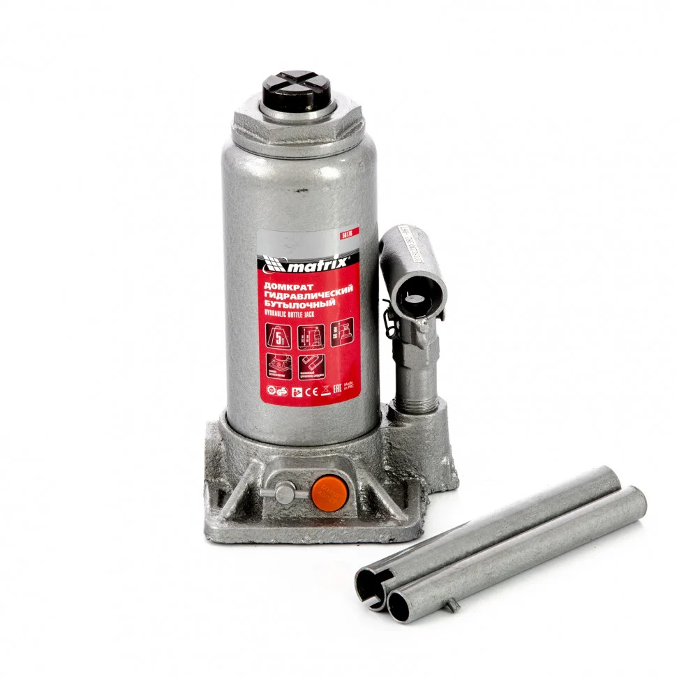Гидравлический бутылочный домкрат Matrix 50776 обеспечивает быстрое поднятие грузов массой до 5 т на высоту 197-382 мм. Он оснащен встроенным магнитным уловителем, который собирает металлическую стружку, предотвращая износ резиновых уплотнителей. С помощью домкрата можно произвести ремонт авто.ПреимуществаКлапан безопасности - домкрат не подвержен перегрузкам, т.к. не поднимает вес свыше установленной нормы.Долговечность и надежность - домкрат выполнен из высокопрочной коррозионностойкой стали.Разборная конструкция - корпус можно отсоединить от станины при необходимости ремонта или прочистки домкрата.Удобство транспортировки - в комплекте с домкратом идет пластиковый кейс.