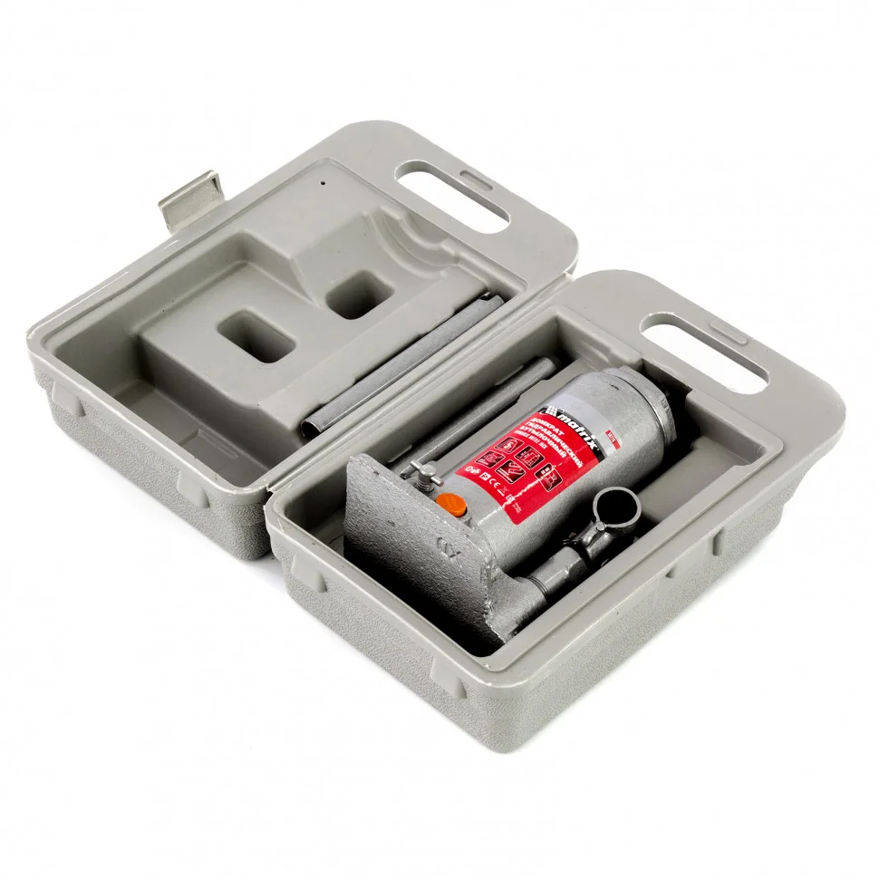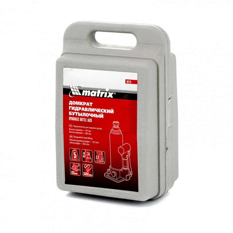Домкрат гидравлический бутылочный, 5 т, h подъема 197-382 мм, в пластиковом кейсе Matrix 50776