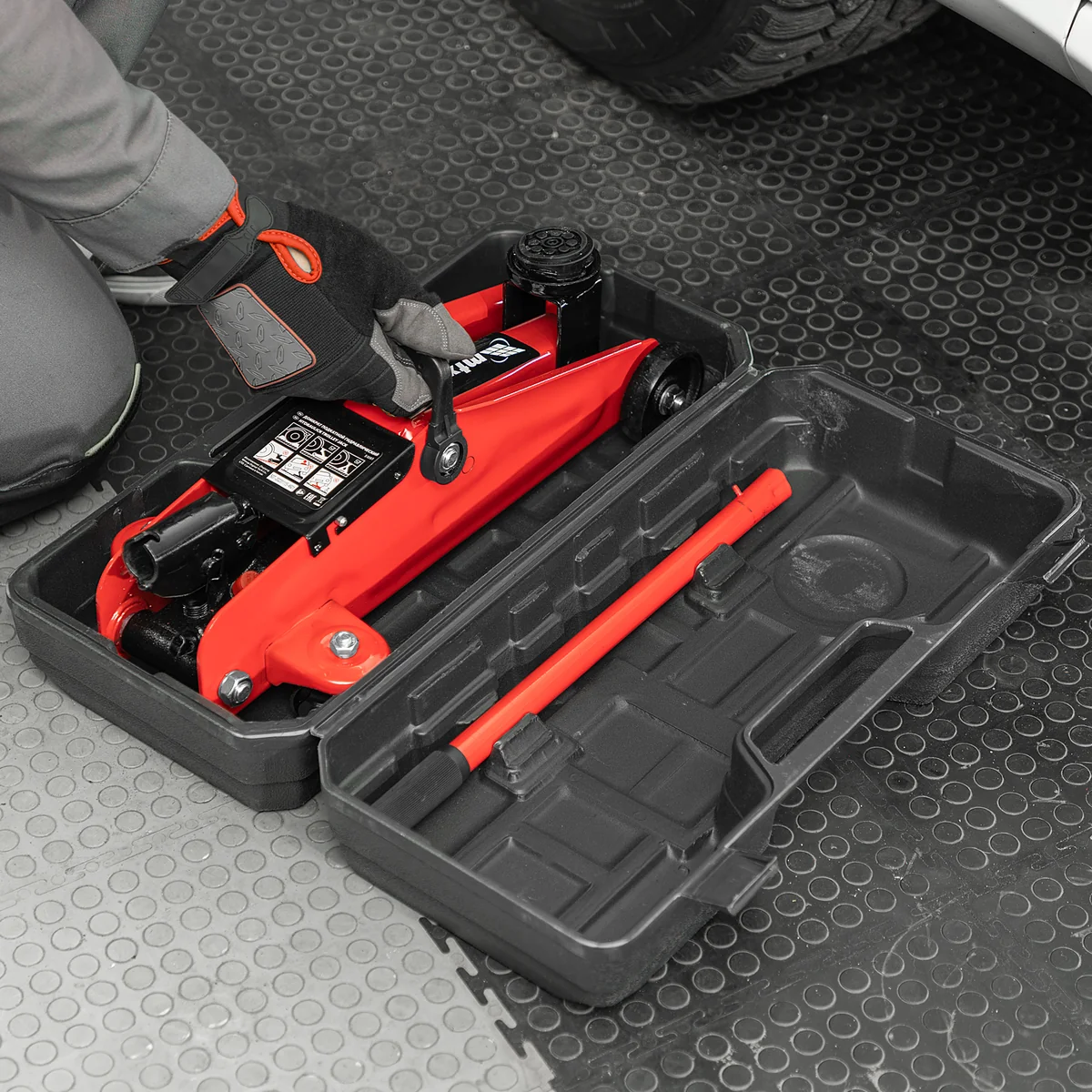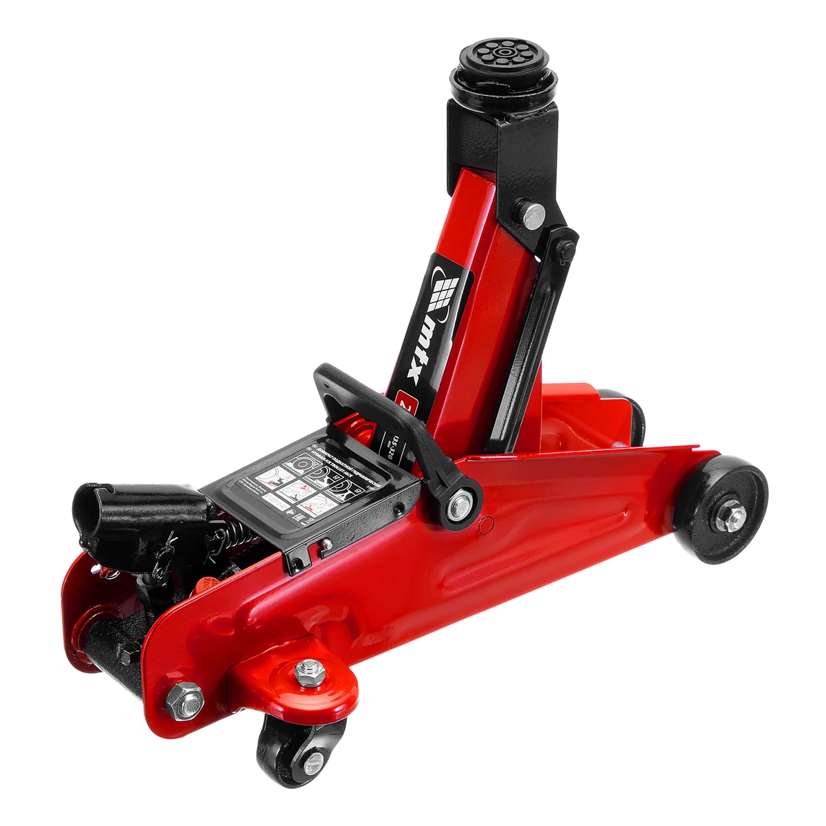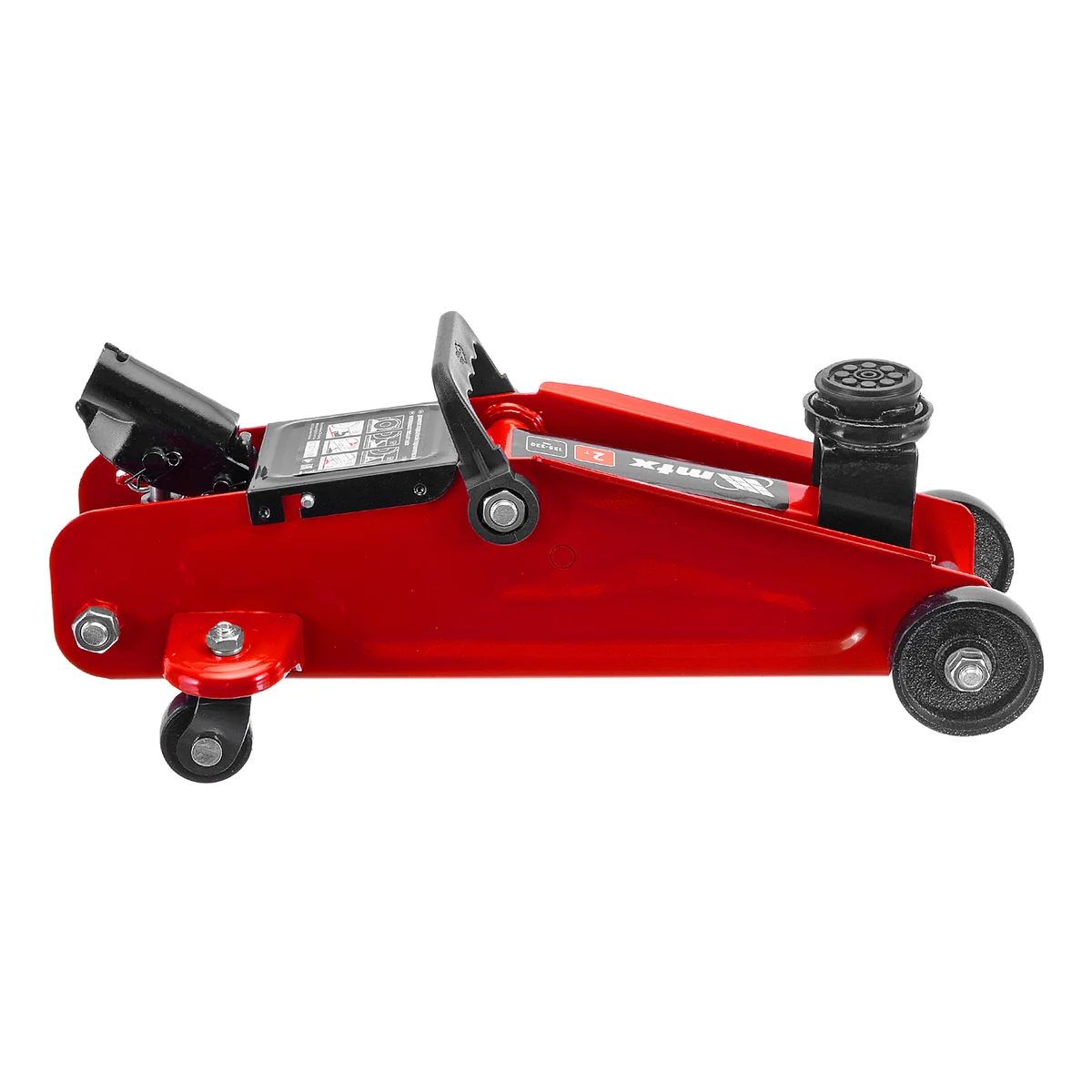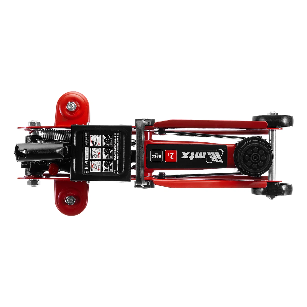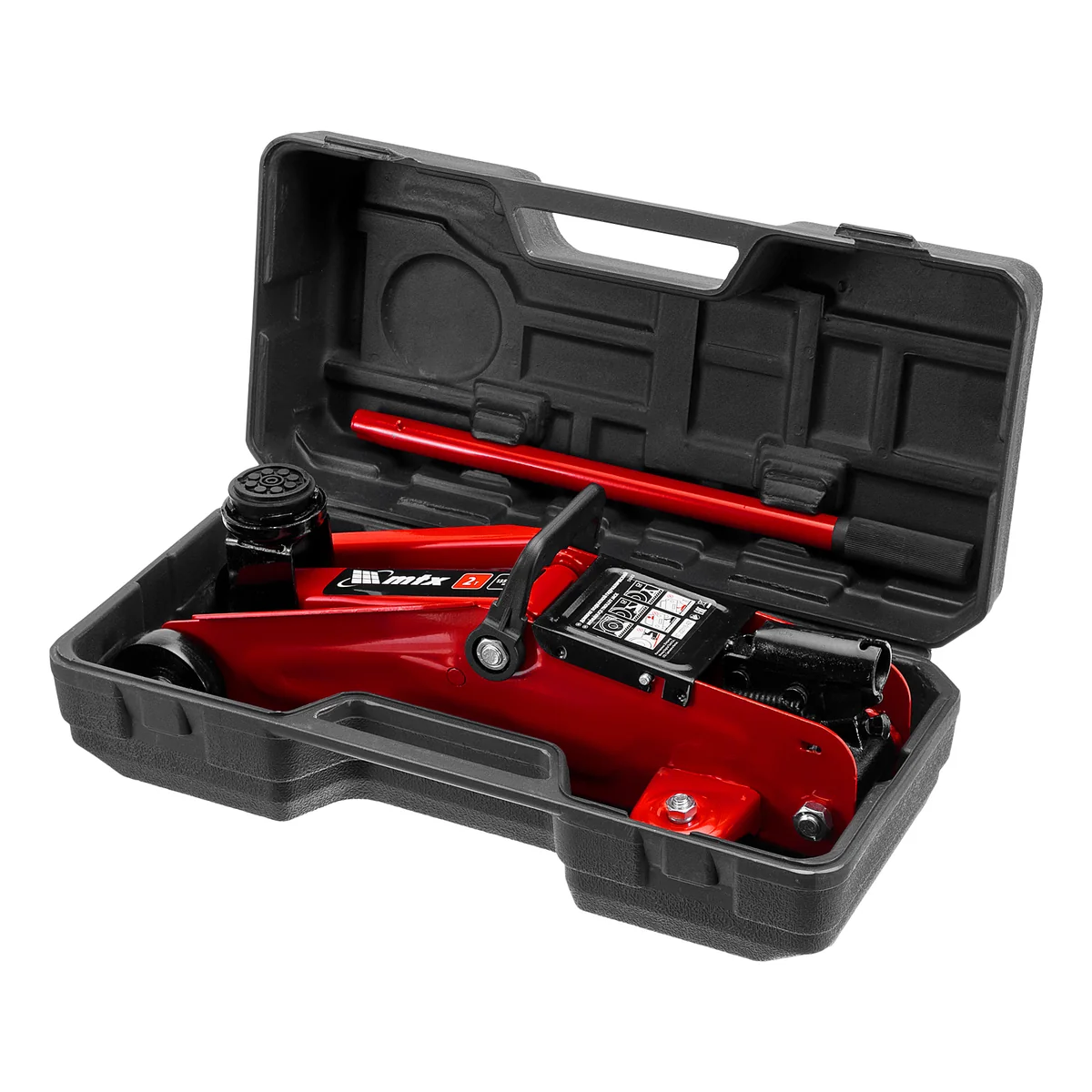 Гидравлический подкатной домкрат MTX 51083, поставляющийся в пластиковом кейсе, с высотой подхвата 135 мм, предназначен для подъема грузов массой до 2 т на высоту до 320 мм. Применяется для обслуживания автомобилей со стандартным клиренсом. Компактный домкрат подходит для самостоятельного использования автовладельцами.