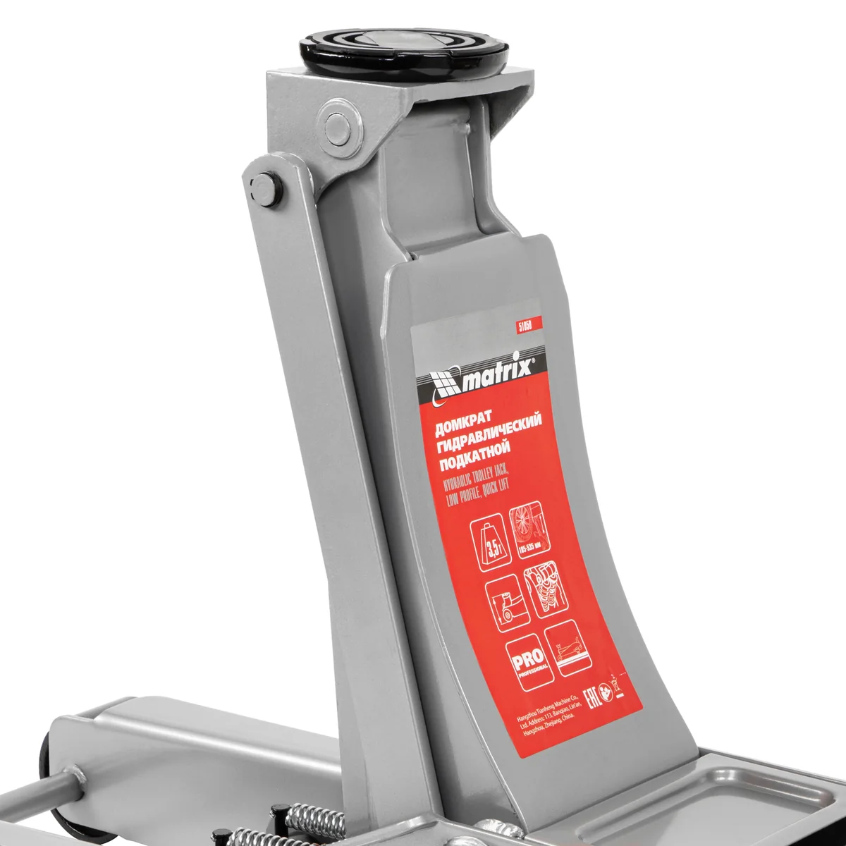 Гидравлический подкатной домкрат Matrix Low Profile 51050 с функцией Quick Lift имеет высоту подхвата 100 мм и обеспечивает быстрый и плавный подъем грузов массой до 3,5 т на высоту до 535 мм. Подходит как для автомобилей с низким клиренсом, так и для внедорожников и других авто с высоким дорожным просветом. Предназначен для профессионального использования.ПреимуществаНадежность — двухплунжерная конструкция обеспечивает стабильную работу и быстрый подъем груза даже при интенсивном использовании домкрата.Безопасная работа — предохранительный клапан не позволяет поднимать машины массой более 3,5 т, предотвращая поломку домкрата.Защита от сколов и царапин — резиновая опора предохраняет кузов авто от повреждений.Комфортная работа в холодное время года — мягкая обрезиненная ручка приятна на ощупь и не скользит в руке даже в холодную погоду.