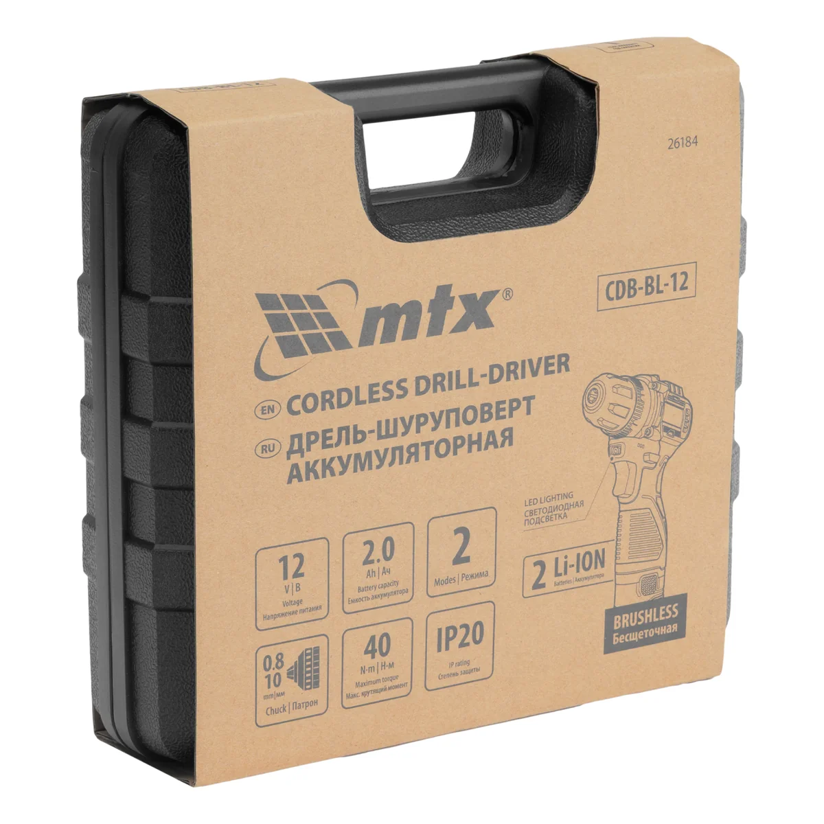 Аккумуляторная дрель-шуруповерт MTX CDB-BL-12 26184 с бесщеточным двигателем питается от батареи Li-Ion 12 В и предназначена для работы с резьбовым крепежом (винтами, шурупами и т.д.), а также для сверления отверстий в металле, древесине, пластмассе. Максимальный крутящий момент составляет 40 Н·м, что позволяет эффективно решать поставленные задачи. Дрель-шуруповерт позволяет сверлить отверстия диаметром 20 мм в древесине и 10 мм — в металле. Надежный бесщеточный двигатель прослужит долго, обеспечивая высокую производительность и не требуя сложного обслуживания. Инструмент оптимален для выполнения ремонтных и монтажных работ в быту.