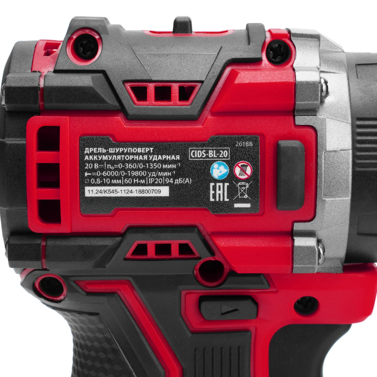 Дрель-шуруповерт аккумуляторная ударная бесщет. CIDS-BL-20, Li-Ion, 20 В 26188