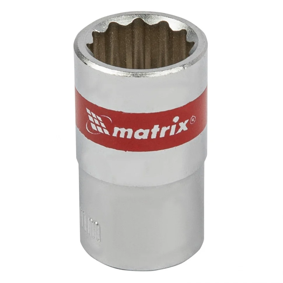 Головка торцевая, 15 мм, двенадцатигранная, CrV, под квадрат 1/2, хромированная Matrix 13689