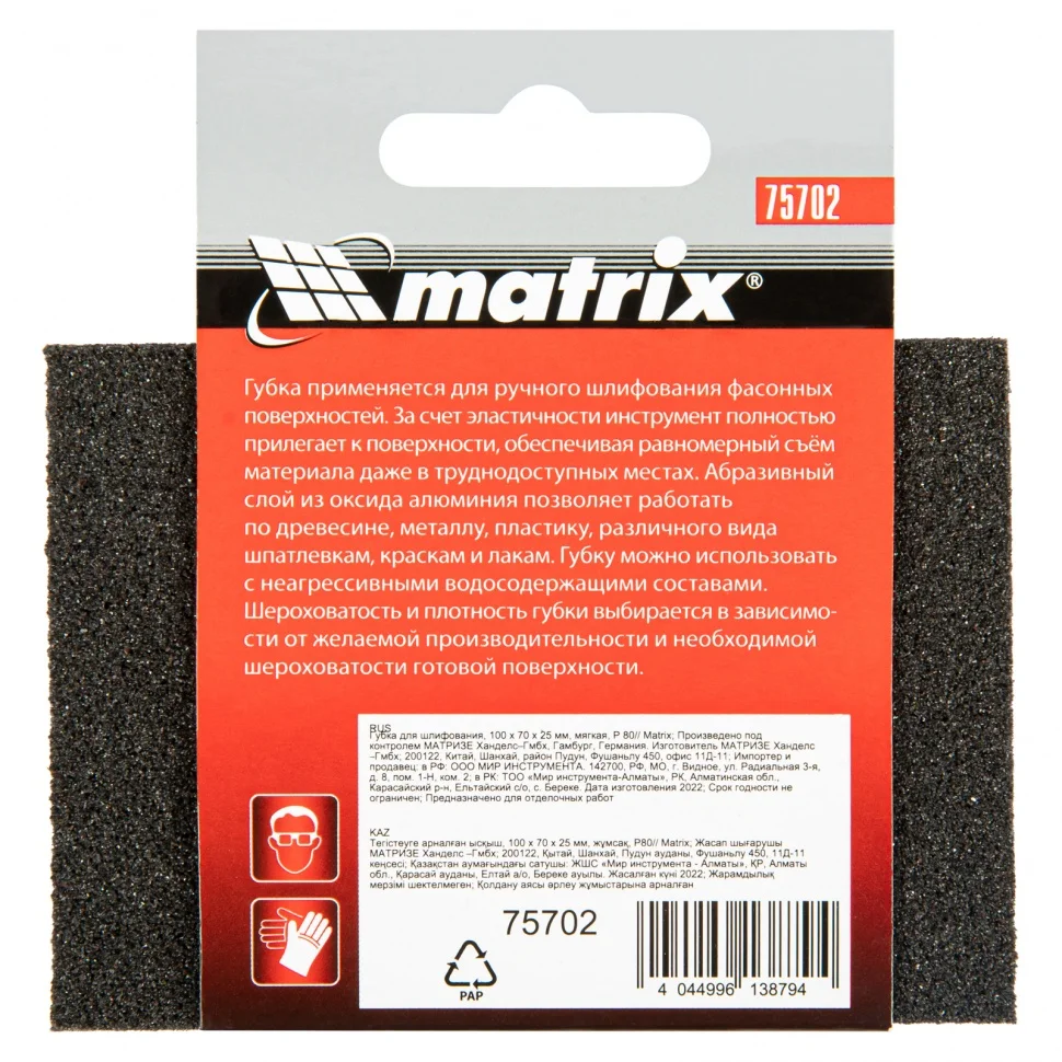 Губка для шлифования, 100 х 70 х 25 мм, мягкая, P 80 Matrix 75702