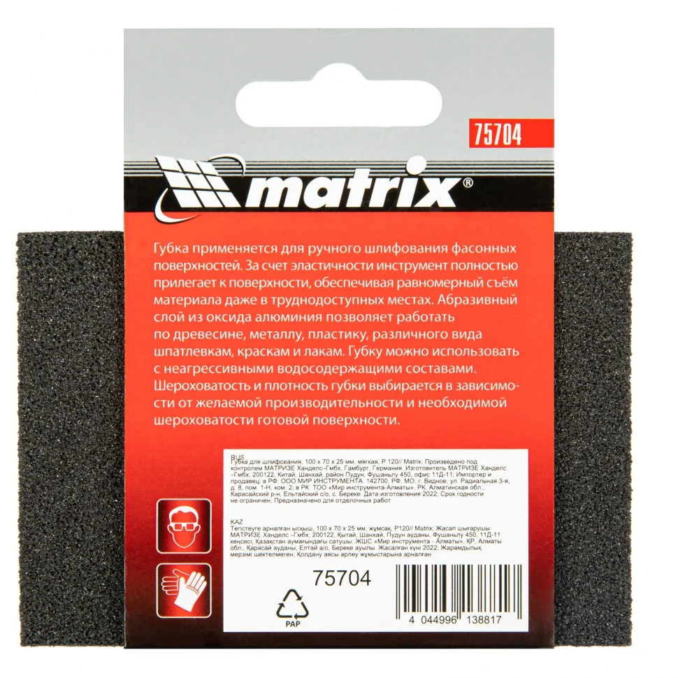Губка для шлифования, 100 х 70 х 25 мм, мягкая, P120 Matrix 75704