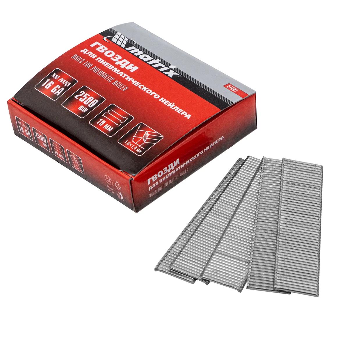Гвозди Matrix 16GA 57601, 2500 шт. в упаковке, устанавливаются в пневматические нейлеры, совместимые с крепежами сечением 1,6 х 1,4 и длиной 19 мм. Используются для закрепления вагонки, сайдинга, черепицы и гипсокартона на деревянных поверхностях. Будут полезны во время строительства и ремонта.ПреимуществаПрочность и коррозионная стойкость — гвозди выполнены из стали с никелированным покрытием.Удобное хранение и эксплуатация — гвозди поставляются склеенными в блоки.Экономичная упаковка — в комплекте 2500 штук, которых хватит надолго.