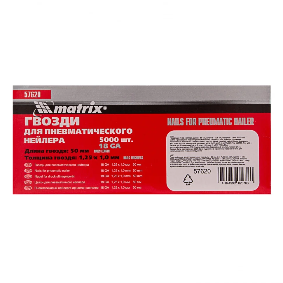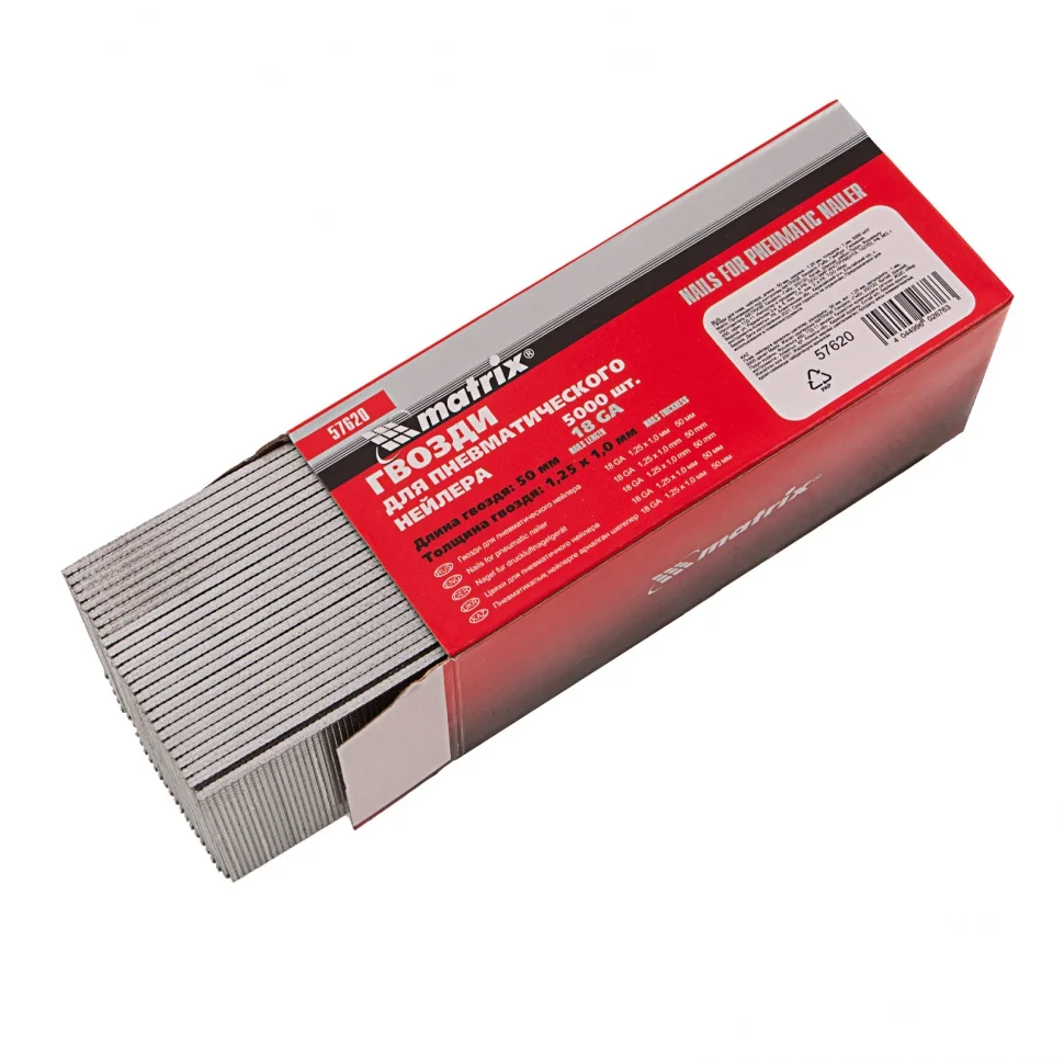 Гвозди Matrix 57620, тип 18GA, предназначены для пневматических нейлеров, работающих с оснасткой размером 50 х 1,25 х 1 мм. Они обеспечивают быстрое и точное соединение деревянных деталей, помогают зафиксировать на деревянных и металлических поверхностях ткань, элементы дизайна, фурнитуру. ПреимуществаВысокая прочность — крепеж выполнен из углеродистой стали, поэтому практически не подвержен поломкам, а соединяемые конструкции получаются очень надежными.Антикоррозионное покрытие — гвозди защищены от разрушения даже в условиях повышенной влажности.Большой запас — одна коробка вмещает 5000 гвоздей, которых хватит на долгое время.