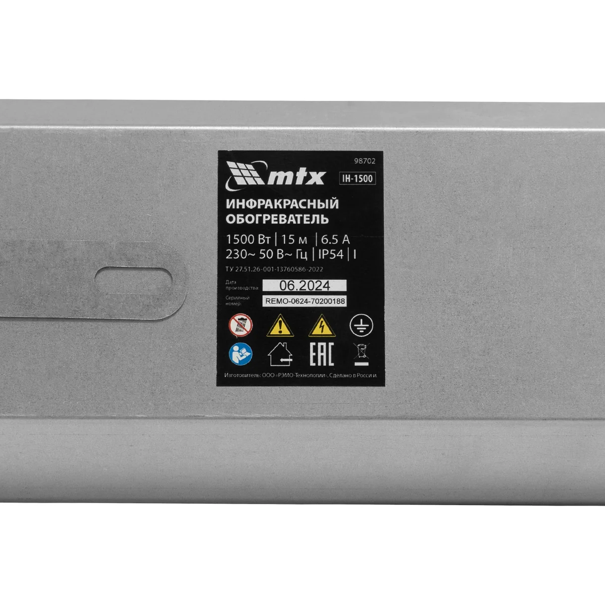 Инфракрасный обогреватель IH- 1500, 230В, 1500 Вт MTX 98702