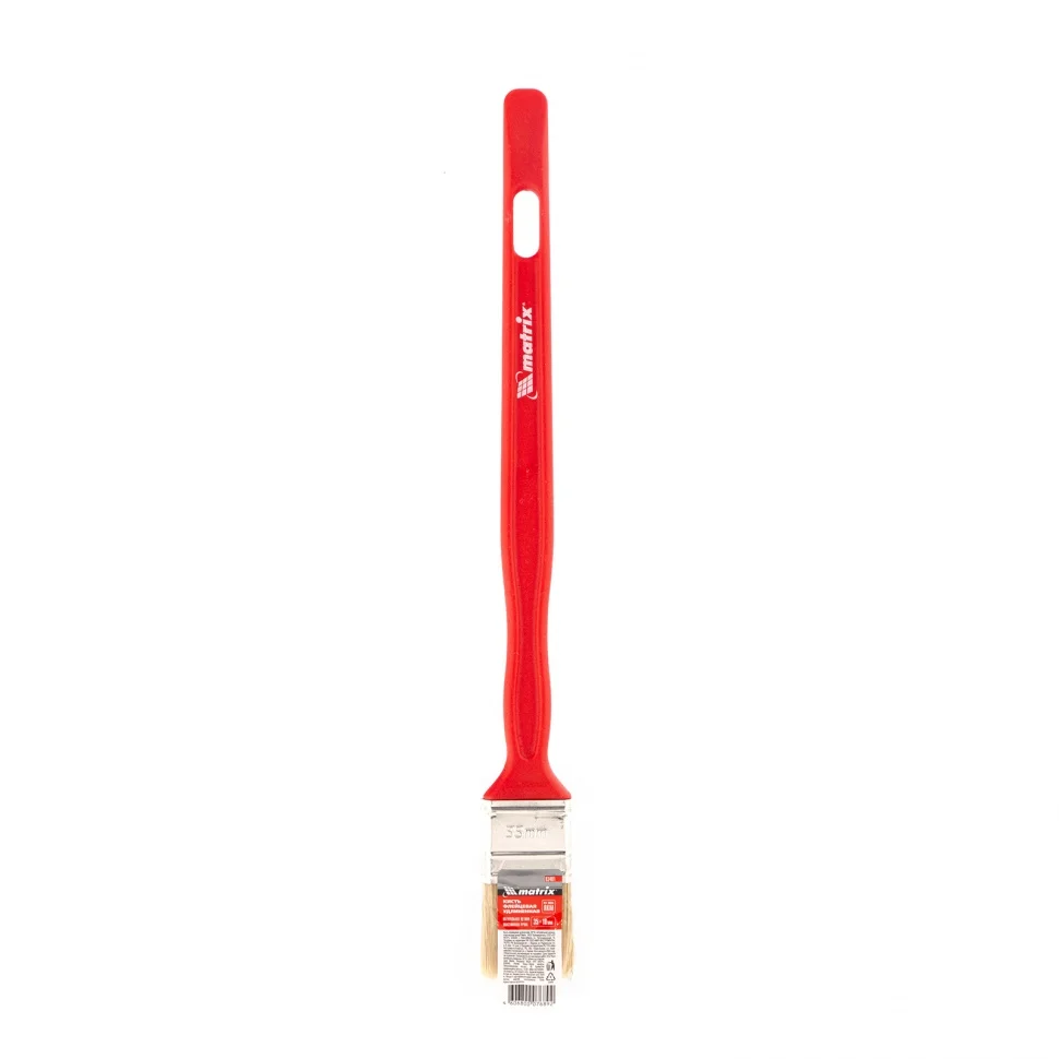 Удлиненная флейцевая кисть Matrix 83401 с натуральной щетиной и пластиковой ручкой используется для отделочных работ с применением любых лакокрасочных материалов. Ее ширина составляет 35 мм, а толщина — 10 мм, поэтому кисть удобна при окрашивании небольших или узких участков. Удлиненная ручка упрощает окрашивание труднодоступных участков и снижает усталость при длительной работе.ПреимуществаНатуральная светлая щетина двойной выварки обладает хорошей краскоотдачей и износоустойчивостьюЗа счет расщепленных кончиков щетина удерживает и равномерно распределяет большой объем краски.Кисть подходит для ЛКМ с химическими растворителями, т.к. натуральная щетина устойчива к воздействию агрессивных жидкостей.Бандаж имеет покрытие, защищающее его от коррозии и продлевающее срок службы инструмента.Отверстие в рукоятке позволяет подвешивать кисть для просушки или хранения.