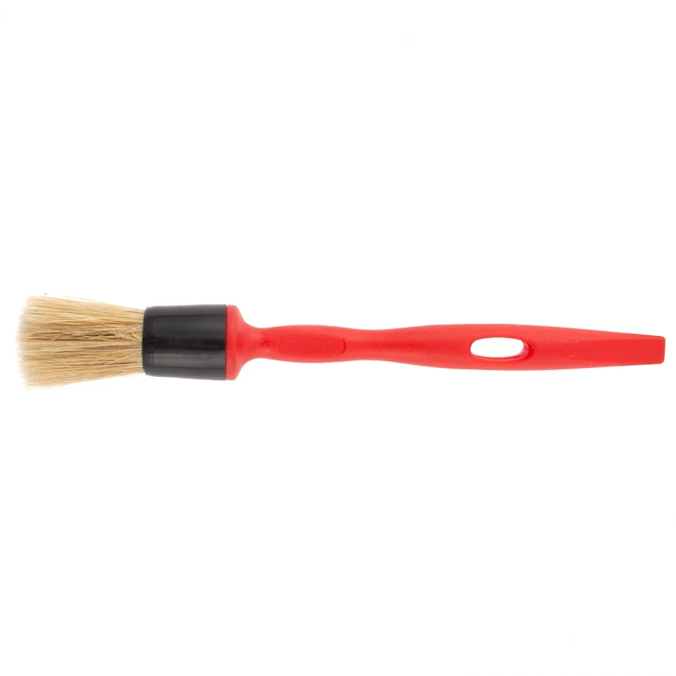 Круглая кисть Matrix Color Line №20 83406 с натуральной щетиной и пластиковой ручкой применяется для окрашивания длинных узких поверхностей любыми видами лакокрасочных материалов. За счет плотной набивки пучка кисть хорошо впитывает и отдает краску. Удлиненная ручка упрощает работу в малодоступных местах.ПреимуществаНатуральная светлая щетина с небольшим добавлением искусственной сохраняет упругость и не деформируется при использовании с любыми ЛКМ.Щетина обладает эффектом «памяти» — быстро возвращает форму даже при интенсивной работе кистью.У щетинок расщеплены кончики, поэтому кисть удерживает и равномерно распределяет большой объем краски.Бандаж изготовлен из полипропилена, а значит, не подвержен разрушению при длительном контакте с ЛКМ или водой.Пластиковые клинья не допускают деформации кисти при замачивании в воде, это позволяет продлить срок ее службы.Щетина проклеена тщательно подобранным эпоксидным клеем, удерживается с помощью клиньев и бандажа, поэтому кисть обладает повышенным качеством и выдерживает интенсивные нагрузки.Рукоятка имеет эргономичную форму, препятствующую появлению усталости при долгой работе.Отверстие на рукоятке позволяет подвешивать кисть для просушки или хранения.