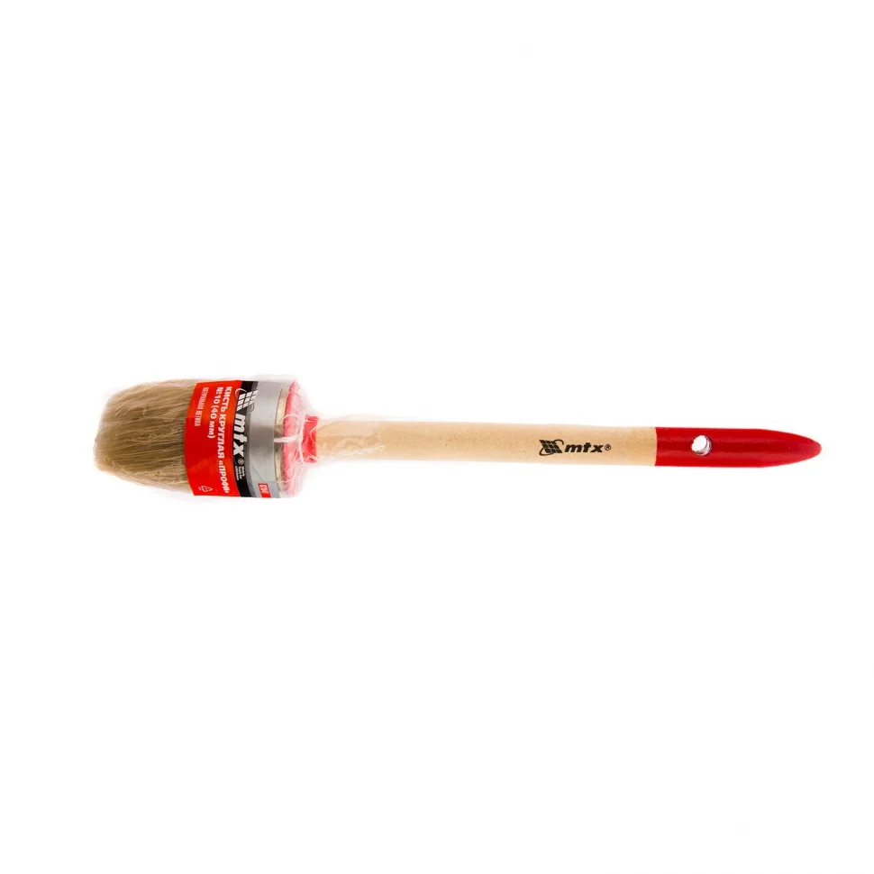 Круглая кисть MTX Профи №10 82047, 40 мм, с натуральной щетиной и деревянной ручкой, используется при проведении профессиональных малярных работ. Рабочая часть изготовлена из натуральной свиной щетины с небольшим добавлением искусственной, это придает ей износостойкость и устойчивость к агрессивным масляным краскам и ЛКМ на основе растворителей. Круглая кисть оптимально подходит для окрашивания узких и труднодоступных участков.ПреимуществаЩетина двойной выварки не содержит включений жира и мелких частиц грязи, это повышает качество работы.Щетина расщеплена на концах, таким образом достигается высокая впитывающая способность и отдача ЛКМ.Металлический бандаж с антикоррозийным покрытием не ржавеет при контакте с водой, поэтому кисть можно мыть.Кисть с щетиной разной длины повышает точность работы.Рукоятка из отборной древесины отшлифована и покрыта лаком для удобства работы и увеличения срока службы кисти.Отверстие на рукоятке позволяет подвешивать кисть для практичного хранения.