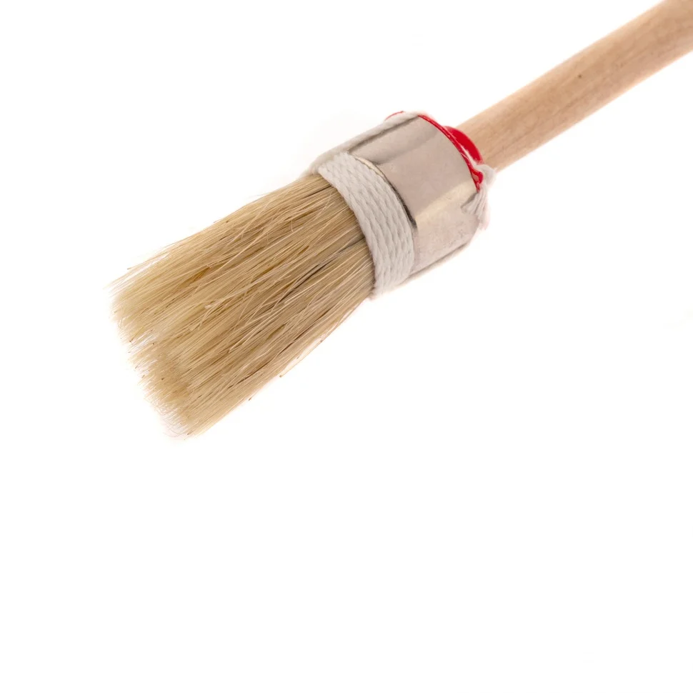 Круглая кисть MTX Профи №2 82041, 20 мм, с натуральной щетиной и деревянной ручкой, используется при проведении профессиональных малярных работ. Рабочая часть изготовлена из натуральной свиной щетины с небольшим добавлением искусственной, это придает ей износостойкость и устойчивость к агрессивным масляным краскам и ЛКМ на основе растворителей. Круглая кисть оптимально подходит для окрашивания узких и труднодоступных участков.ПреимуществаЩетина двойной выварки не содержит включений жира и мелких частиц грязи, это повышает качество работы.Щетина расщеплена на концах, таким образом достигается высокая впитывающая способность и отдача ЛКМ.Металлический бандаж с антикоррозийным покрытием не ржавеет при контакте с водой, поэтому кисть можно мыть.Кисть с щетиной разной длины повышает точность работы.Рукоятка из отборной древесины отшлифована и покрыта лаком для удобства работы и увеличения срока службы кисти.Отверстие на рукоятке позволяет подвешивать кисть для практичного хранения.