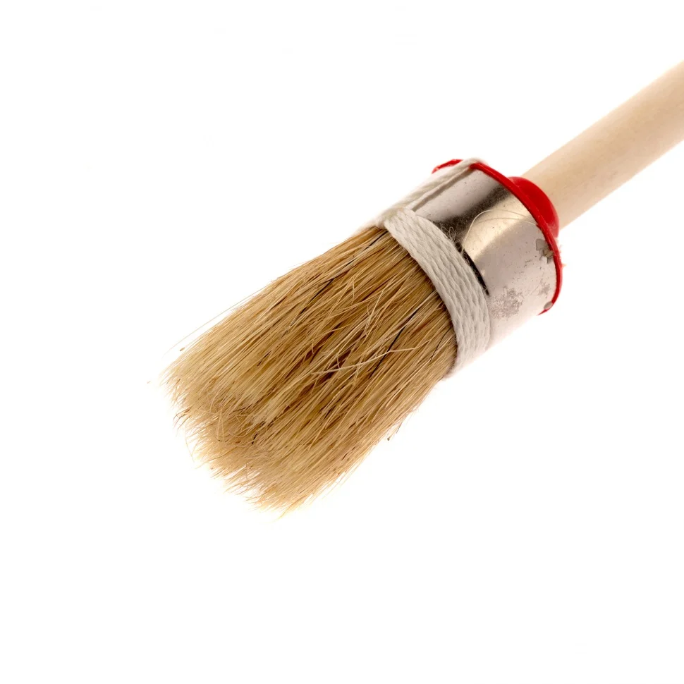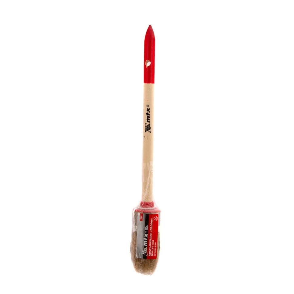 Круглая кисть MTX Профи №4 82042, 25 мм, с натуральной щетиной и деревянной ручкой, используется при проведении профессиональных малярных работ. Рабочая часть изготовлена из натуральной свиной щетины с небольшим добавлением искусственной, это придает ей износостойкость и устойчивость к агрессивным масляным краскам и ЛКМ на основе растворителей. Круглая кисть оптимально подходит для окрашивания узких и труднодоступных участков.ПреимуществаЩетина двойной выварки не содержит включений жира и мелких частиц грязи, это повышает качество работы.Щетина расщеплена на концах, таким образом достигается высокая впитывающая способность и отдача ЛКМ.Металлический бандаж с антикоррозийным покрытием не ржавеет при контакте с водой, поэтому кисть можно мыть.Кисть с щетиной разной длины повышает точность работы.Рукоятка из отборной древесины отшлифована и покрыта лаком для удобства работы и увеличения срока службы кисти.Отверстие на рукоятке позволяет подвешивать кисть для практичного хранения.